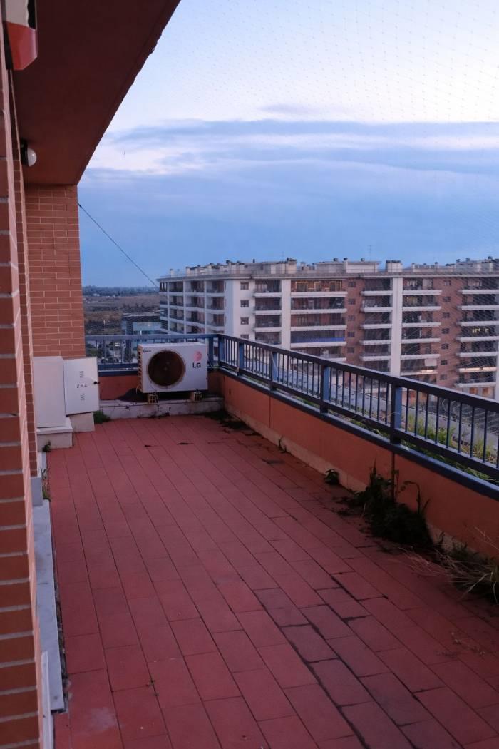 Balcone panoramico di circa 30 mq, un'estensione vivibile per pranzi, relax e intrattenimento.