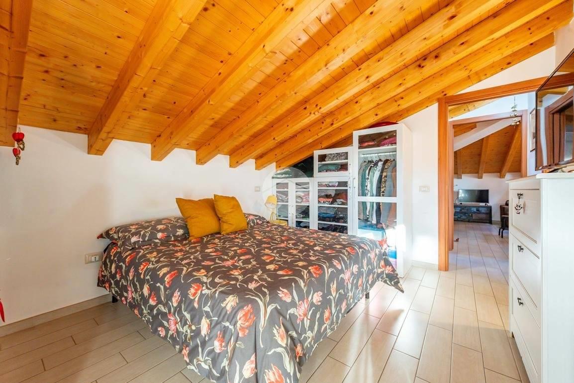 La camera matrimoniale, anch’essa con accesso su un balcone di proprietà, garantisce privacy e una piacevole continuità tra interno ed esterno.