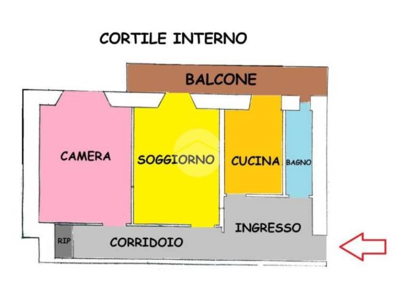 L’appartamento, da ristrutturare, offre ingresso, cucina abitabile e soggiorno con accesso al balcone, oltre a un bagno finestrato. L’esposizione interna garantisce quiete e riservatezza, nel pieno della città.