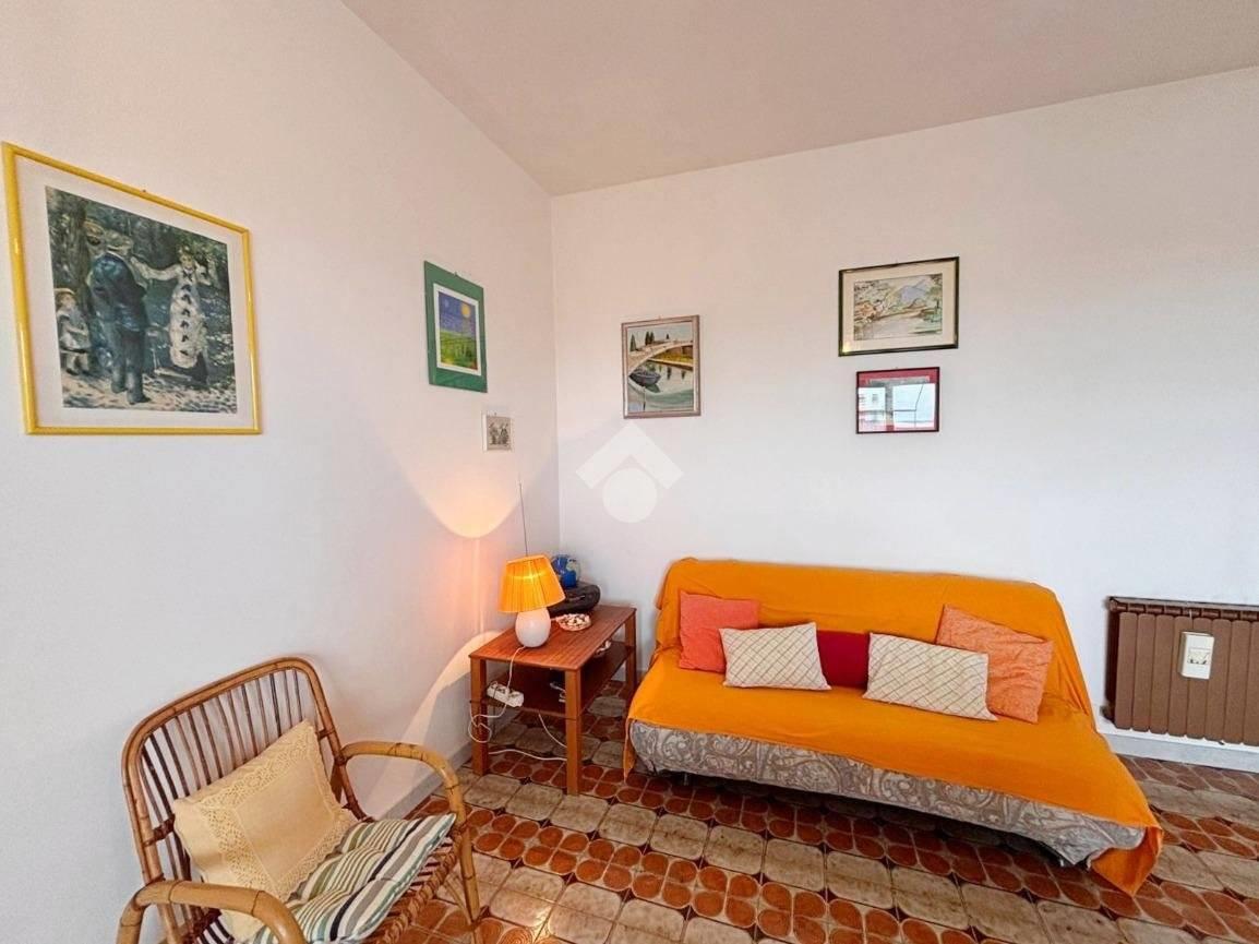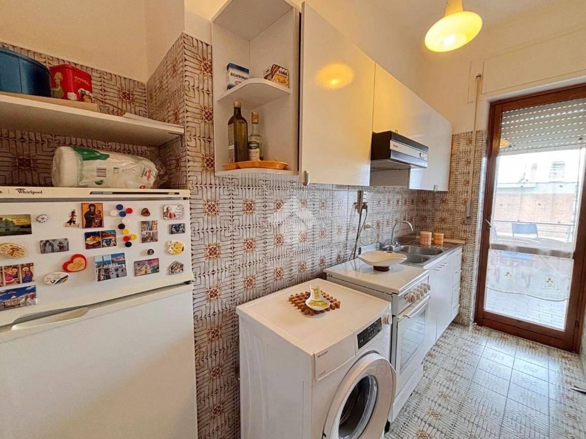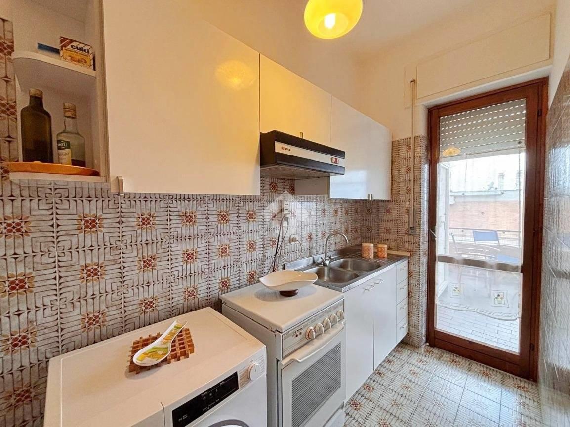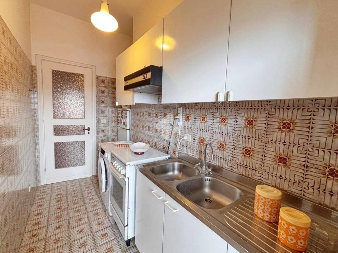Adiacente al soggiorno si trova la cucina, separata e funzionale, anch’essa dotata di porta finestra che garantisce un’ottima aerazione e una piacevole luminosità naturale. La disposizione degli ambienti permette di vivere la zona giorno in modo pratico e confortevole, mantenendo una netta distinzione tra gli spazi.
