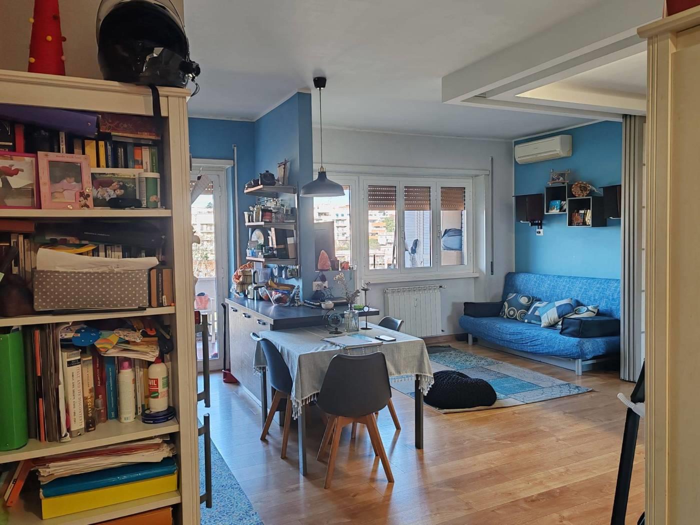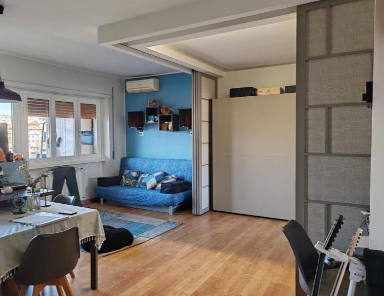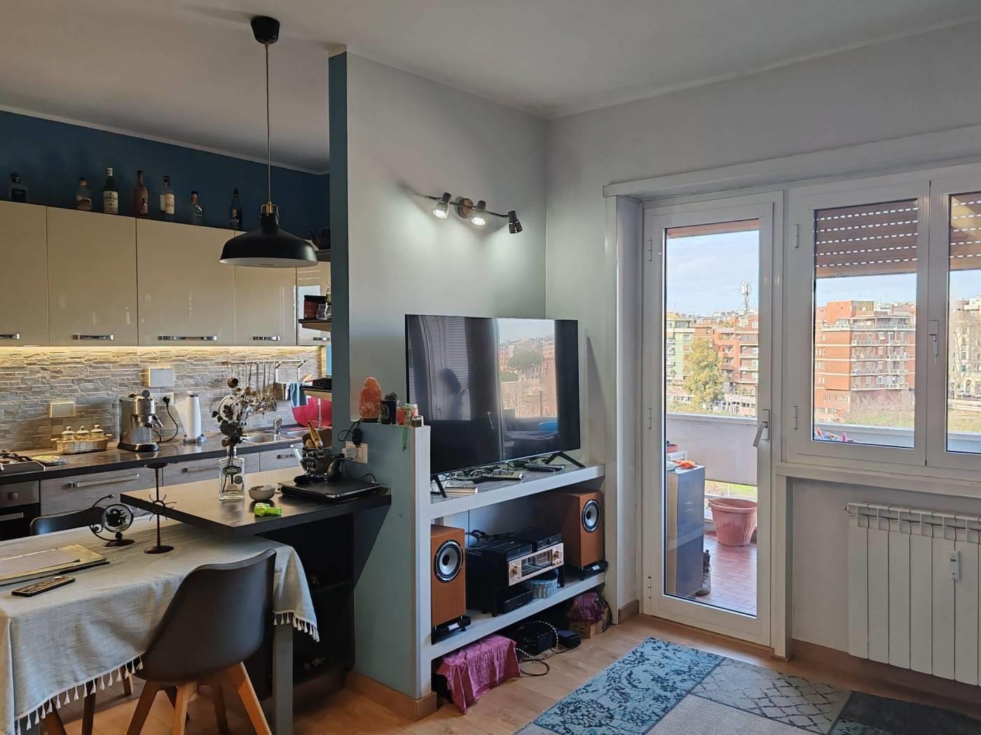 via de fornetto bilocale completamente ristrutturato e luminosissimo al quinto pianodi una palazzina anch'essa ristrutturata, composto da una camera da letto,duebagni,soggiorno con angolo adibito a camera da letto tramite letto a scomparsa e pannelli in stile giapponese ripostiglio e soppalchi.terrazzo di 22 mq con affacciocompletamente libero da altri palazzi di fronte e con visuale fino all'altare della patria .collegatissimotramite stazione di trastevere letteralmente davanti, tram 8 a cinquecento metri e innmerevoli autobus nelle immediate vicinanze.possibilita' di vendita completamente arredatocome da foto riv a claudio edacon imm cell 3386399722