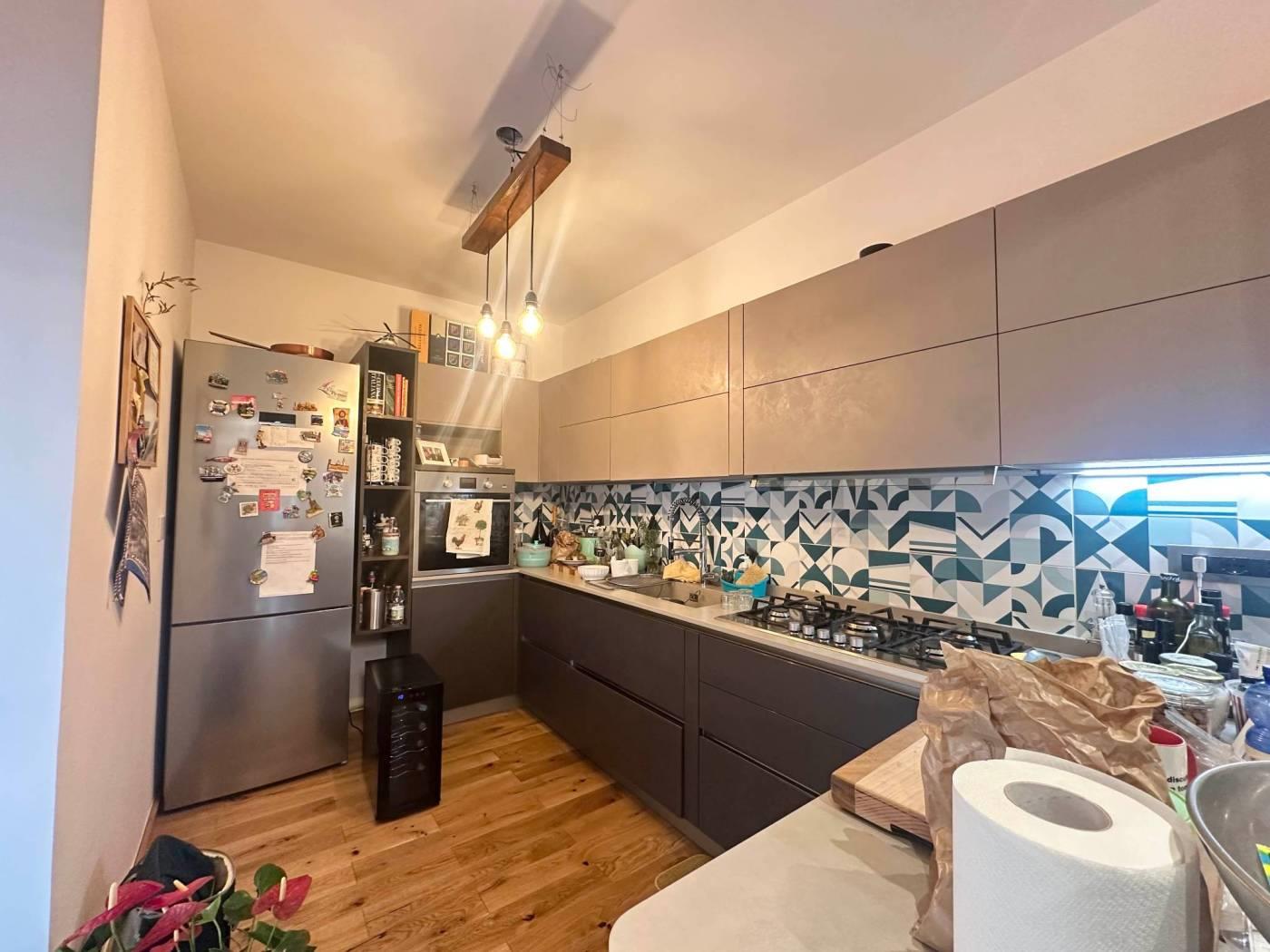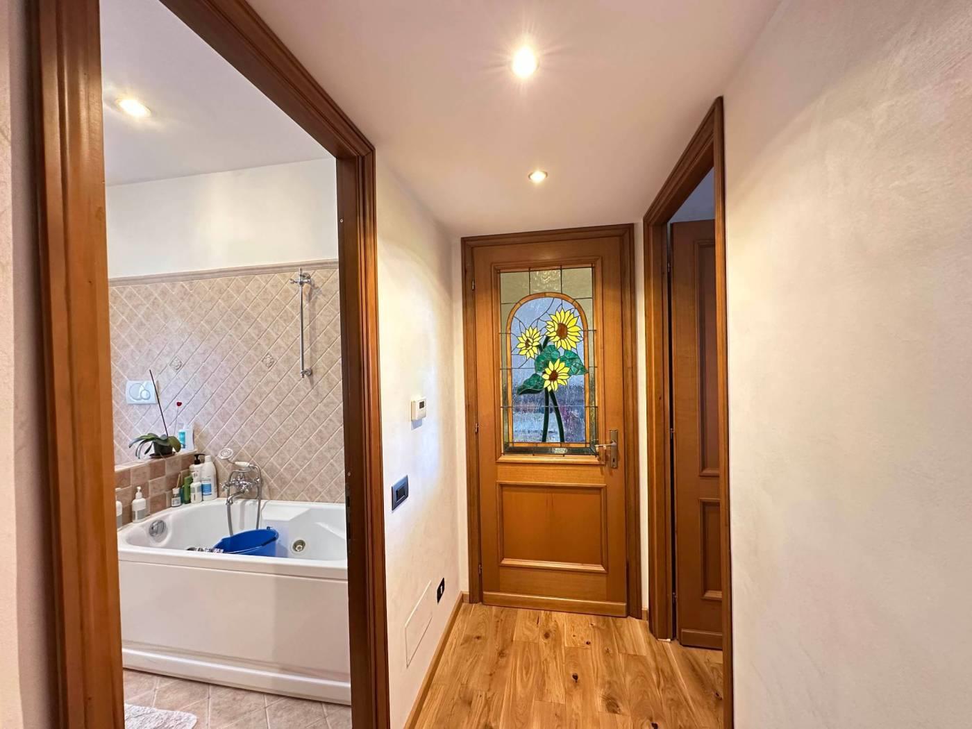 L'edificio in parte in cortina e in parte in tinta offre un elegante atmosfera alla struttura; l' appartamento dispone di portone blindato, infissi in legno doppio vetro con serrande motorizzate, grate di sicurezza blindate in ferro, porte artigianali in legno tra cui due con mosaico a vetro, pavimento in parquet di rovere, vasca idromassaggio Jacuzzi, faretti led ad incasso, videocitofono smart, impianto di condizionamento DAIKIN, armadi a muro, fibra ottica, impianto termico autonomo, esposizione sud ovest; l'accesso al garage dove si trova il posto auto può avvenire tramite tastierino con codice oppure con telecomando. Immobile ristrutturato nel 2021