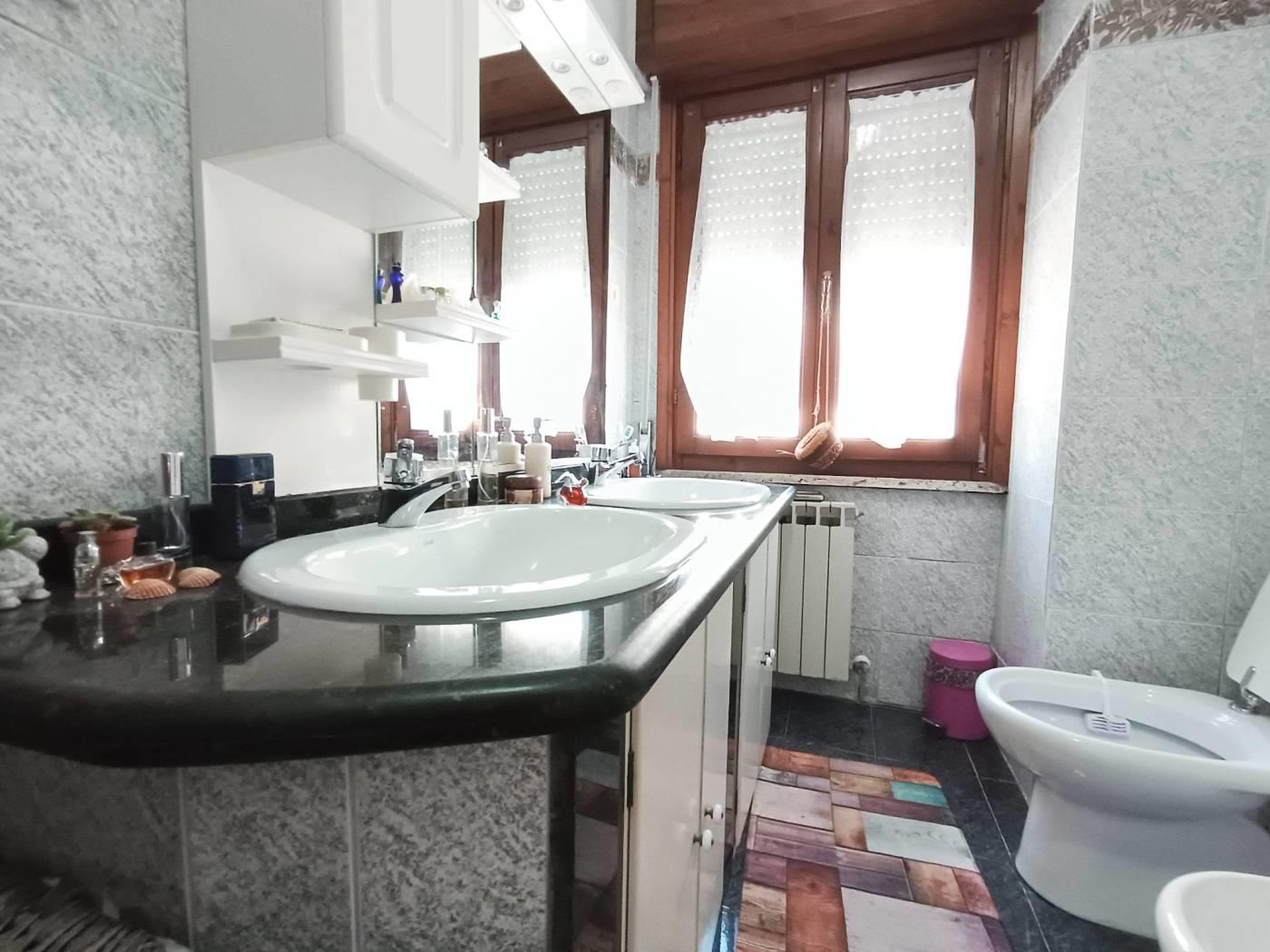Salone con condizionatore. Corridoio, dove sono presenti un soppalco e un armadio a muro per poter massimizzare al meglio gli spazi. Camera da letto, anch'essa con condizionatore. Bagno finestrato in muratura con doppio lavabo, box doccia e angolo lavanderia. Una cucina abitabile adibita a zona pranzo, per poter tenere separata anche la zona pranzo con la zona relax del salone, con uscita sulla parte più ampia del terrazzo da dove è possibile ammirare una porzione di mare. Situato in una zona altamente turistica con vari servizi di prima necessità come scuole, supermercati, farmacie e con la fermate del bus sotto lo stabile e ben collegata con la stazione centrale di Ostia, vicino al Porto turistico di Roma e dalla passeggiata del Lungomare rendono l' immobile versatile per una soluzione definitiva e confortevole vicino il mare o come investimento. La sua ampia metratura rende possibile, con pochissime spese, la diversa distribuzione degli spazi interni trasformandolo in un trilocale con SALONE CUCINA A VISTA, CAMERA DA LETTO E CAMERETTA, ricavata dalla cucina e un BAGNO.
