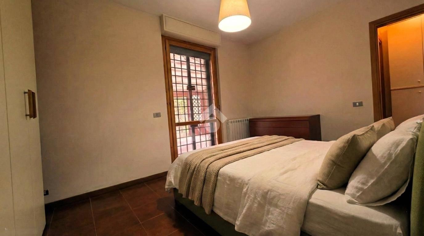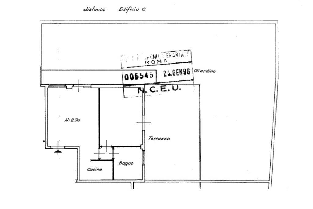 In contesto residenziale caratterizzato da palazzine edificate negli anni ’90, nelle immediate vicinanze di fermate autobus, parco pubblico e stazione FR3 di Olgiata, proponiamo la vendita di un appartamento bilocale posto al piano terra con giardino.
