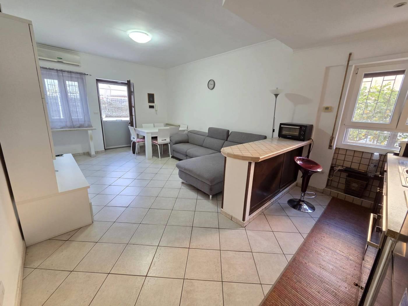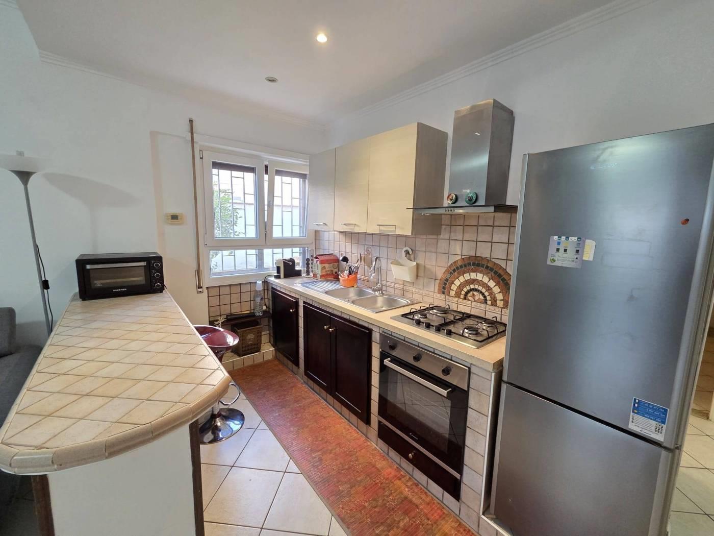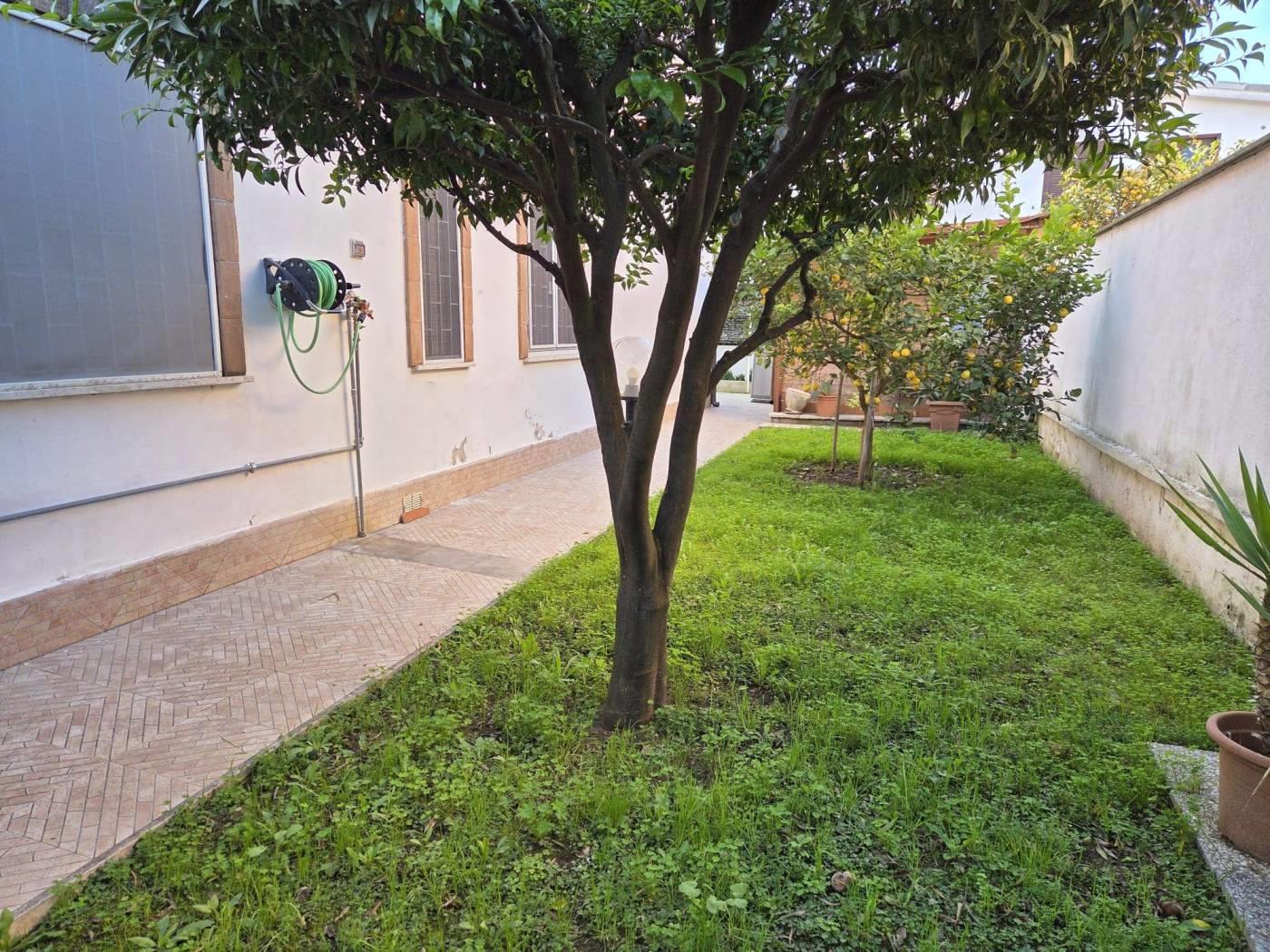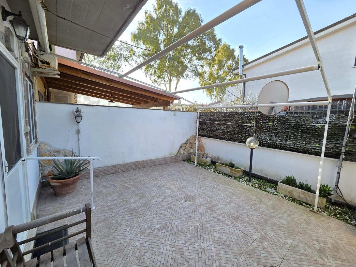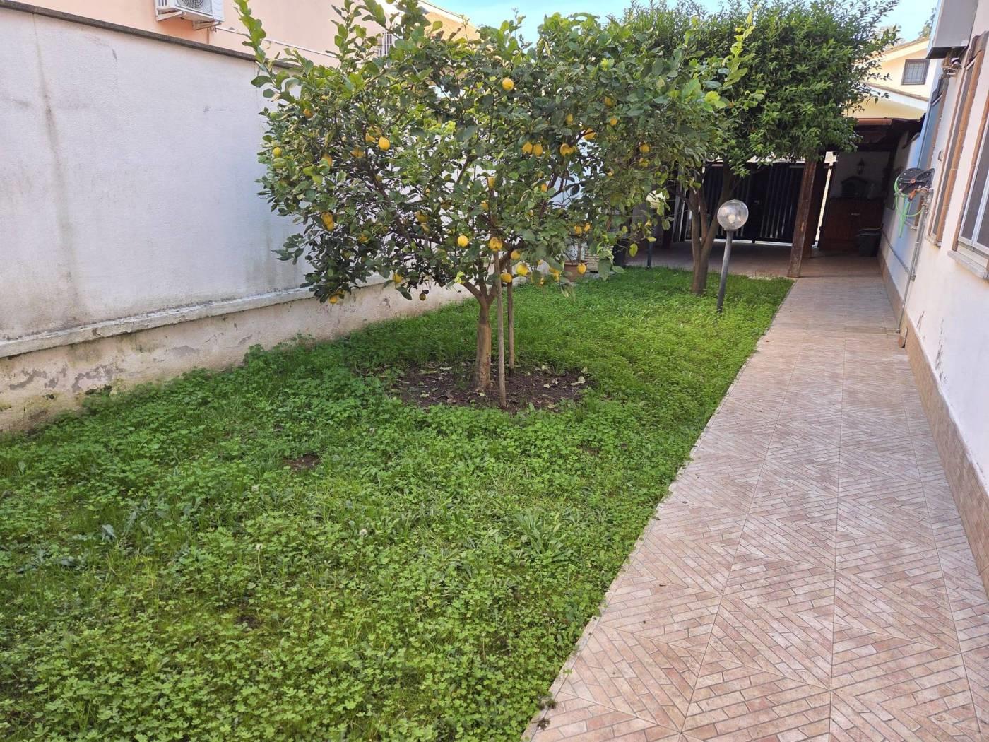 L’immobile si trova in una zona residenziale tranquilla, caratterizzata da ampi spazi verdi. Nelle vicinanze sono presenti supermercati e fermate degli autobus, che agevolano gli spostamenti quotidiani. L’appartamento è un’unità indipendente composta da un soggiorno con angolo cottura, una camera da letto e un servizio. È dotato di infissi in alluminio bianco con doppi vetri, inferriate e portoncino blindato. La proprietà comprende una cantina e un posto auto coperto con accesso tramite cancello automatizzato. Completa l’unità un giardino angolare con prato all’inglese e alberi da frutto.