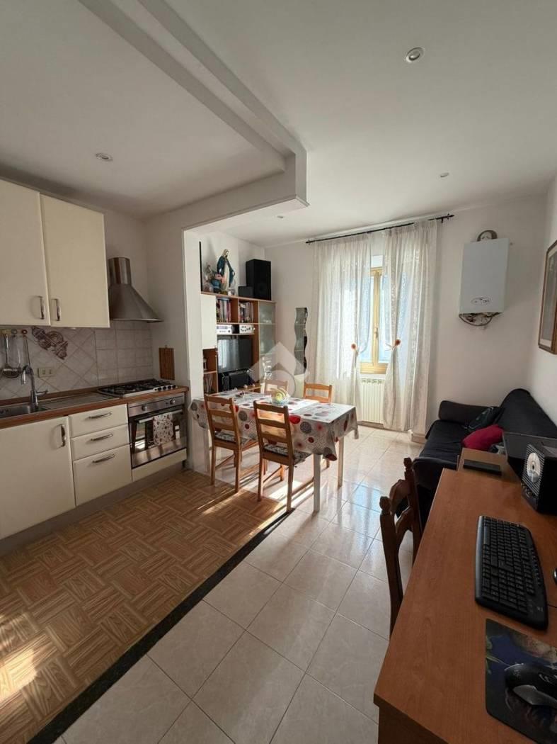 L’appartamento è composto da una zona giorno con cucina open space, una camera matrimoniale, una cameretta e un bagno, ed è ideale per una piccola famiglia o una coppia che apprezza la tranquillità senza rinunciare alla vicinanza al cuore del paese. La disposizione degli spazi è funzionale e permette di vivere la casa con comfort, mentre la posizione al primo piano garantisce una buona luminosità.