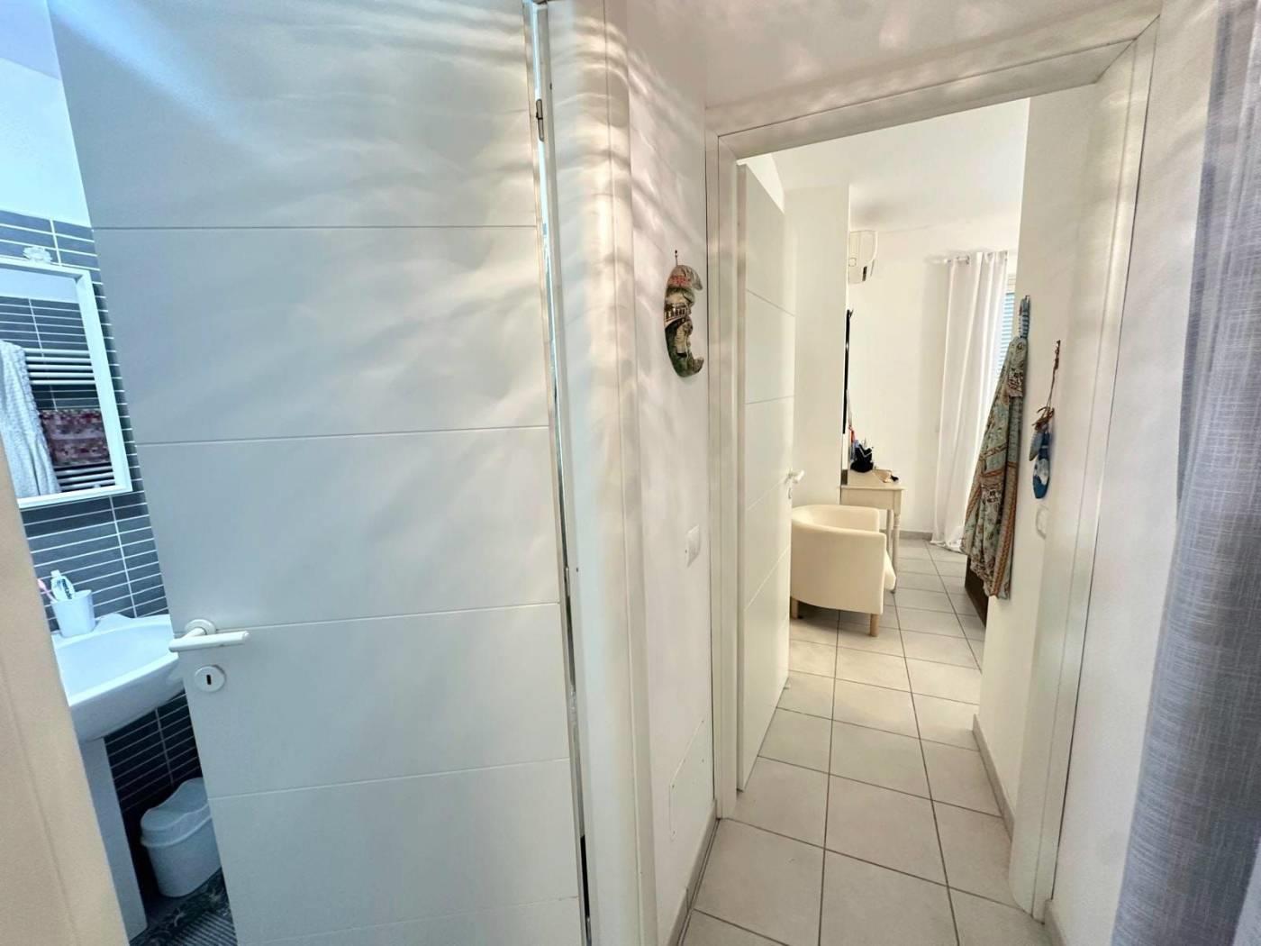Fregene , proproniamo la vendita di un bilocale al piano terra, situato in un residence di recente costruzione con piscina condominiale. CONTATTACI PER VISIONARE L'IMMOBILE . All ' ingresso ci accoglie un grazioso soggiorno con angolo cottura ed uscita tramite portafinestra verso il primo giardino in mattonato . Un comodo disimpegno ci collega al servizio finestrato con box doccia e alla camera matrimoniale con cabina armadio ed uscita verso un altro sfogo esterno in erba. L'immobile dispone di portone blindato all'ingresso, videocitofono, riscaldamento autonomo, aria condizionata in tutti gli ambienti, infissi in PVC doppio vetro. Completa la proprietà una comoda cantina. CONTATTACI PER VISIONARE L'IMMOBILE