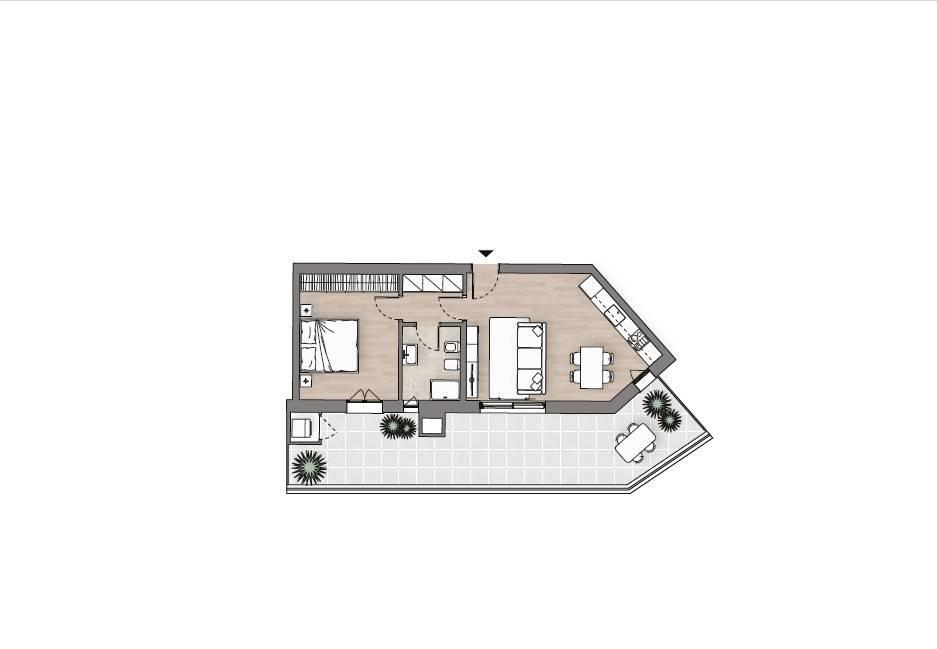 La soluzione si distingue per il suo stile contemporaneo, perfetta per chi cerca un’abitazione pronta da vivere, con spazi intelligenti e una forte connessione tra interno ed esterno.