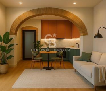 Ampio open space con zona giorno e zona notte divisi da uno splendido arco rivestito in mattoncini che ritroviamo anche ad incorniciare l'angolo cottura, bagno con doccia e corte esterna perfetta per pranzi e cene all'aperto.