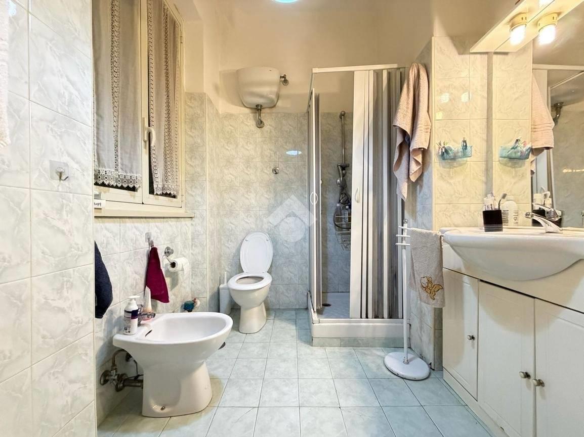 La cucina è separata e abitabile; ciò garantisce comodità e anche maggiore privacy, complice la presenza di una finestra a due ante con affaccio sul giardino condominiale.
