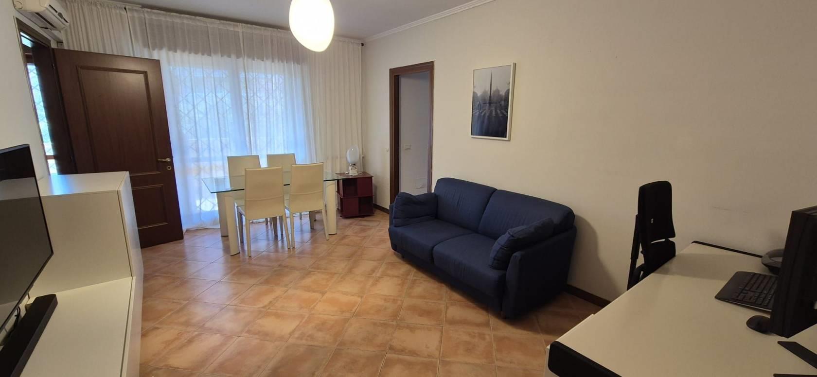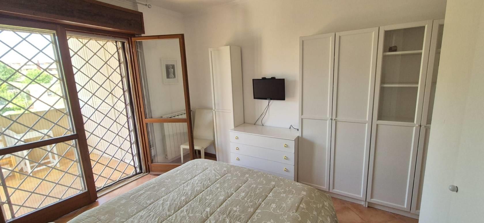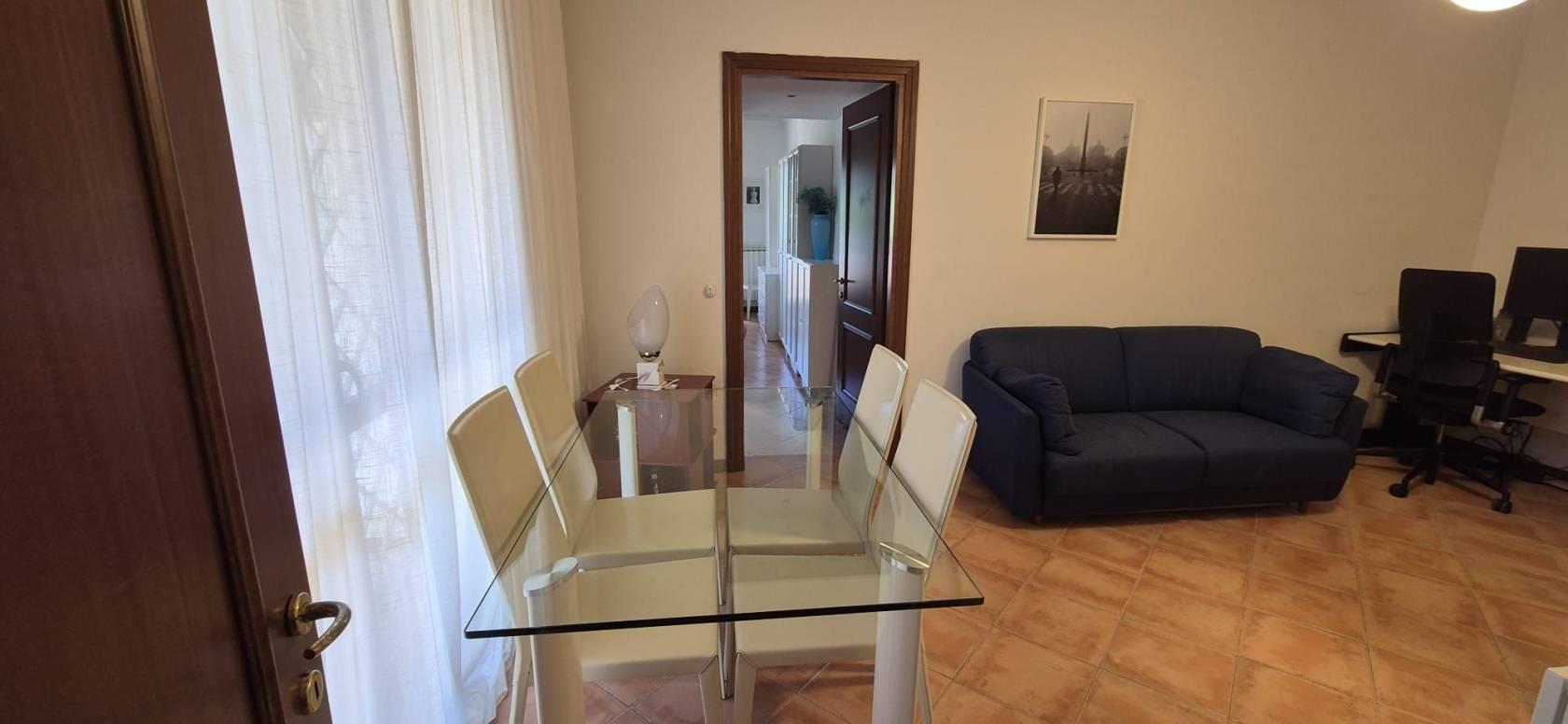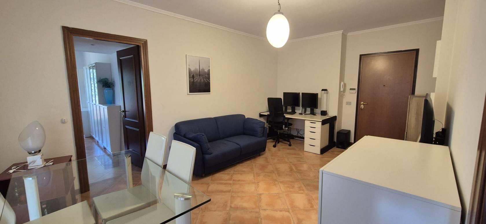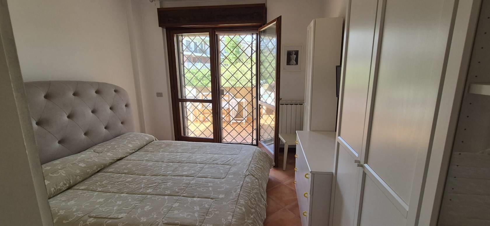 L'appartamento è al primo piano di quattro, ed è così composto: ampio soggiorno, cucina, camera matrimoniale, bagno finestrato, terrazzo e posto auto. L'immobile ha un esposizione a sud/ovest ed è luminosissimo, affaccio libero, senza nessun impatto visivo. Libero da giugno.