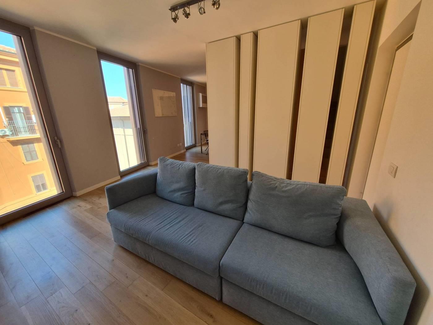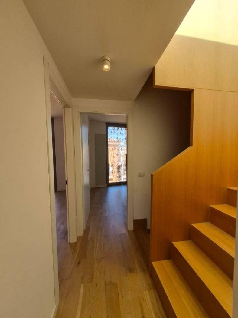 in prestigioso edificio di recente costruzione ad alta efficienza energetica offriamo in locazione un ampio appartamento arredato su tre livelli. Internamente l'appartamento sviluppa una superficie complessiva di mq.120 suddivisi su due livelli più terrazzo di copertura. Al piano inferiore è presente la zona giorno costituita da un ampio salone con zona pranzo, cucina, un bagno di servizio ed un ripostiglio. Al piano superiore si trova la zona notte suddivisa in tre camere da letto, due bagni ed una veranda chiusa da vetri scorrevoli. Infine all'ultimo piano si accede ad un grande terrazzo di copertura. Sono richieste referenze dimostrabili ed adeguate all'impegno economico del contratto, possibilmente accompagnate da fidejussione bancaria e polizza assicurativa per eventuali danni.