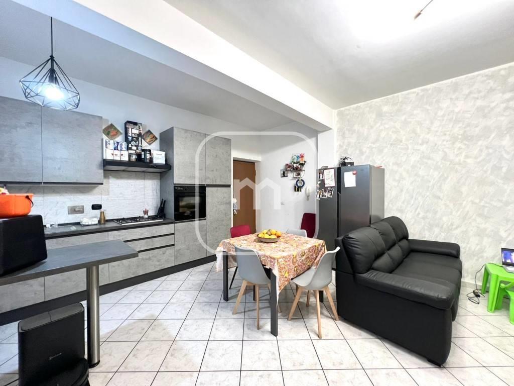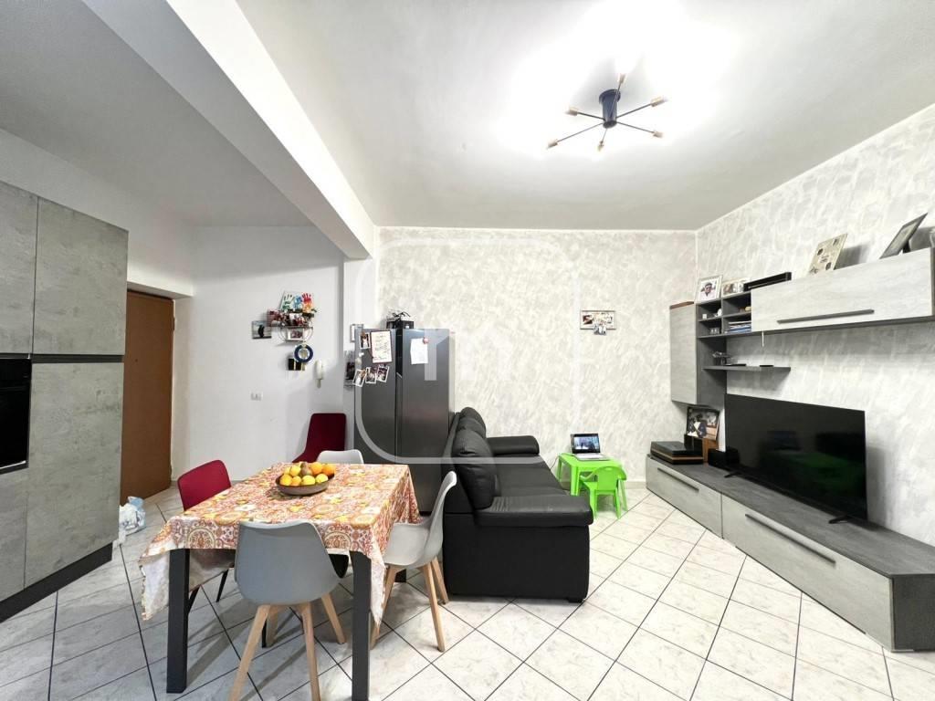 Soggiorno con angolo cottura, luminoso e funzionale, con uscita diretta tramite porta finestra su terrazzo abitabile, ideale per pranzi all’aperto e momenti di relax