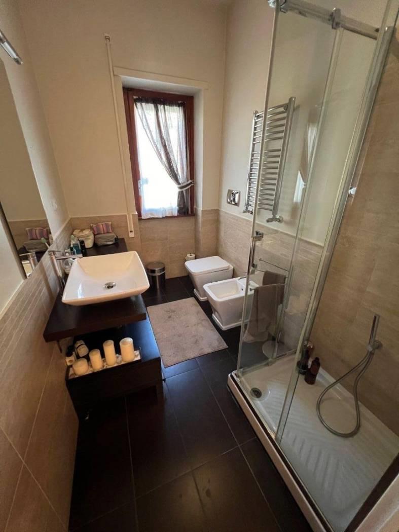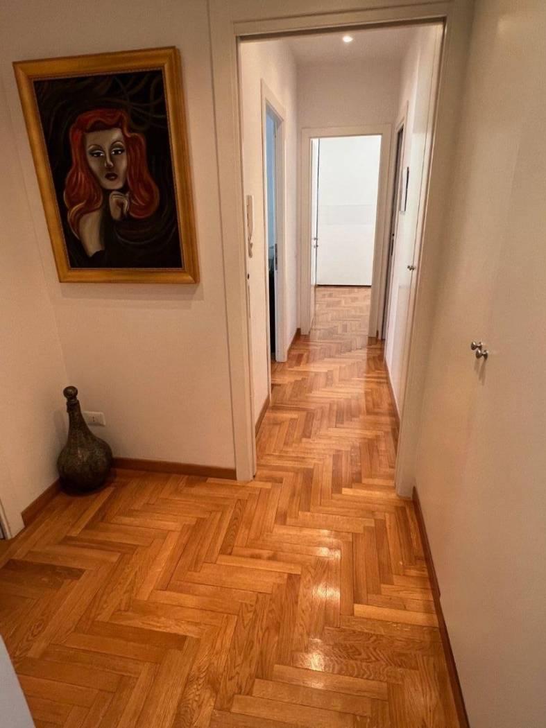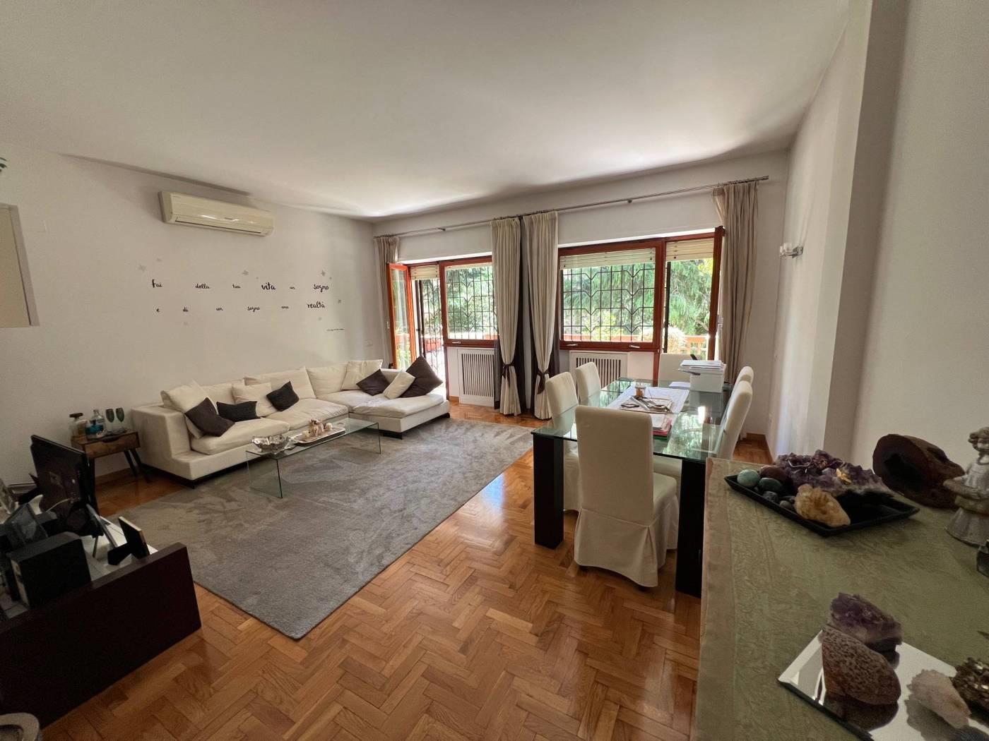 Via di Bravetta adiacente Largo Capasso in comprensorio signorile immerso nel verde appartamento con doppia esposizione composto da ampio salone all'americana con doppia porta finestra che apre su una balconata di circa 4mtx1.60, due camere da letto, cucina abitabile con balcone, doppi servizi uno con vasca e l'altro con doccia ed entrambi con finestra. Appartamento ristrutturato, infissi da sostituire, pavimenti in parquet e ceramica nei servizi. Grate alle porte finestre. Porta blindata. Completa la proprietà una cantina di c.a 7mq e un posto auto scoperto. Affacci nel verde.