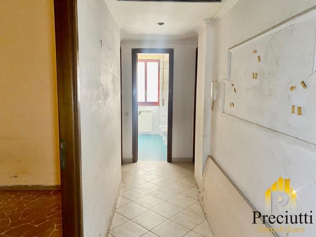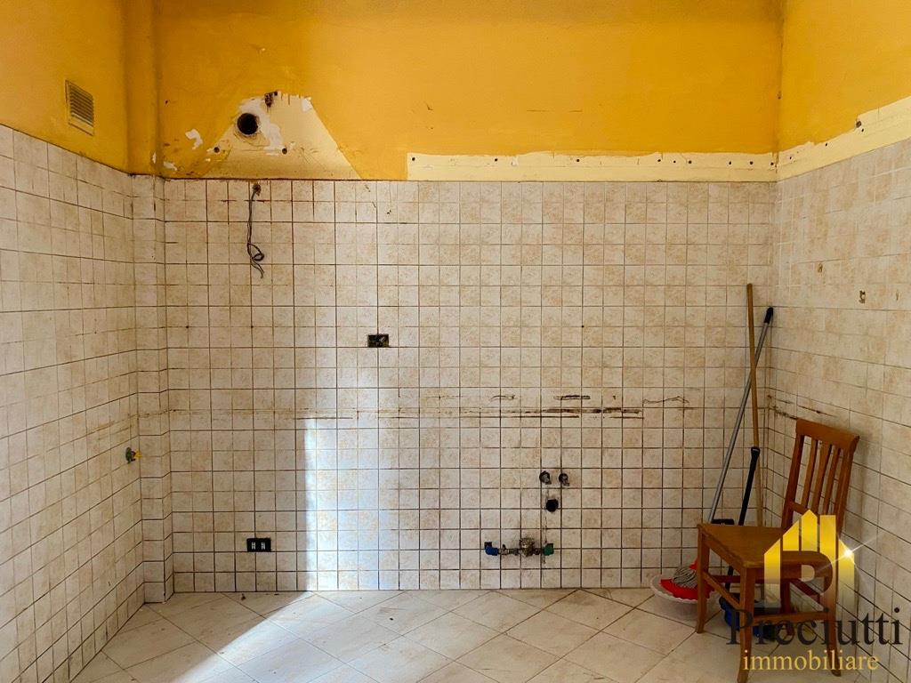 Ingresso con armadio a muro e ripostiglio, soggiorno, cucina abitabile, camera matrimoniale, bagno con doccia e finestra, grande terrazzo con ingresso pedonale, l'immobile è da ristrutturare.