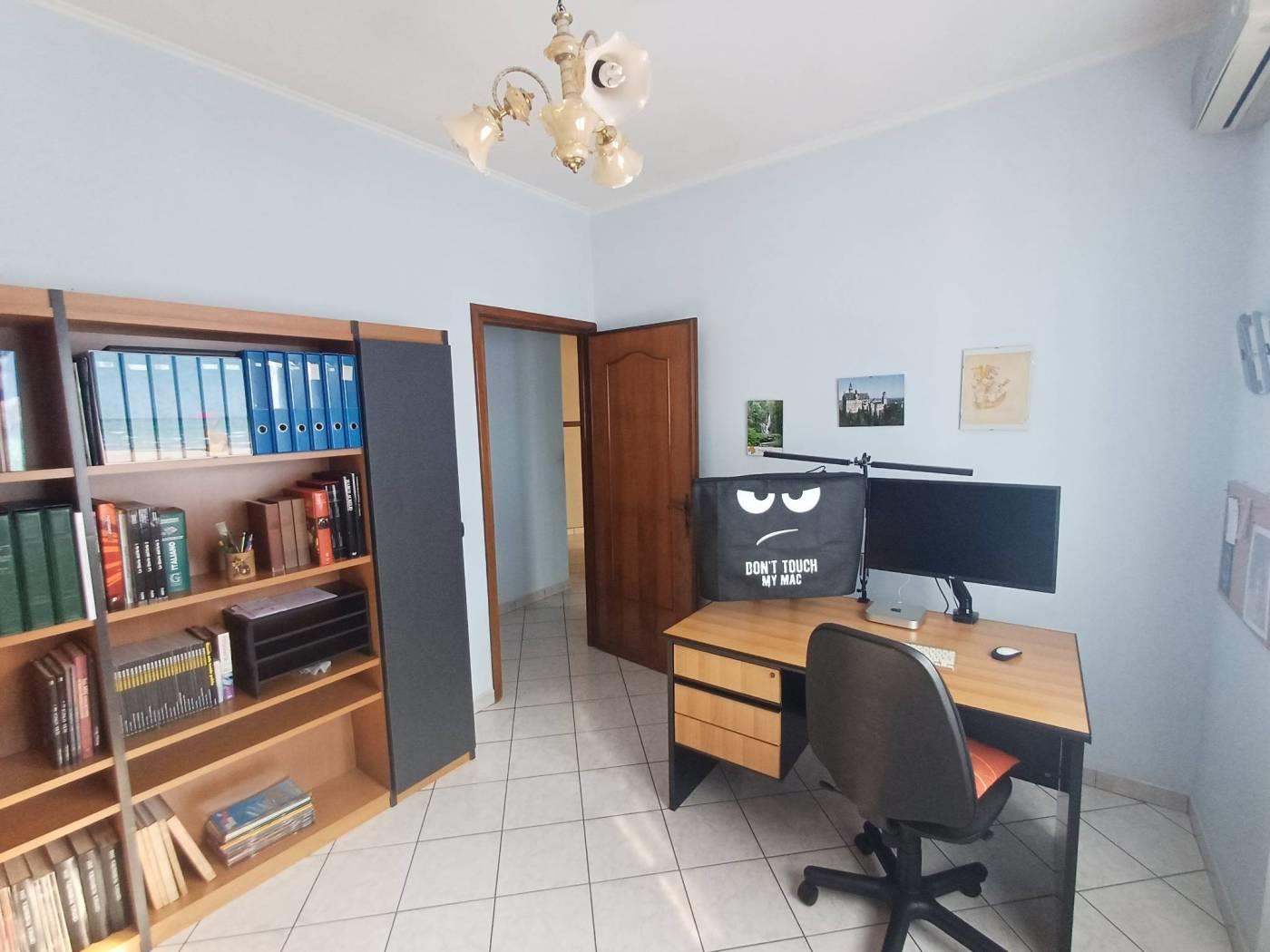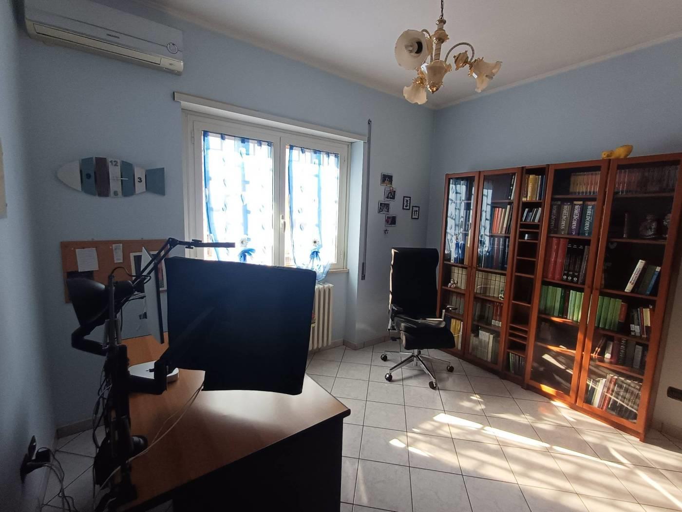 L'immobile è posto al primo piano all'interno di uno stabile in cortina in ottimo stato di conservazione esente da spese condominiali, ed internamente risulta così composto: ingresso, salone doppio con camino, camera matrimoniale, due ampie camerette, cucina abitabile e doppi servizi entrambi finestrati.