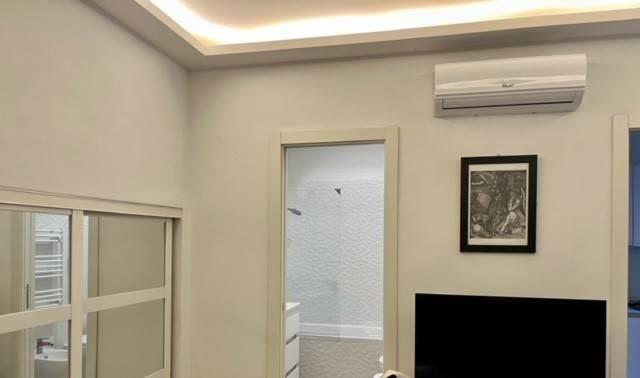 NO CASA VACANZE Nel centralissimo quartiere Flaminio, in un elegante palazzo d'epoca con servizio di portineria e a pochi passi dal moderno Museo Maxxi affittiamo un delizioso loft di 46 mq calpestabili. L'appartamento completamente ristrutturato e arredato, è composto da un ampio ambiente con due grandi finestre che affacciano nel giardino privato condominiale, un bagno con vasca, una cucina con finestra completa di elettrodomestici e un armadio a muro adibito a zona lavanderia con lavatrice e asciugatrice. L'immobile, luminoso nonostante il piano basso è stato completamente coibentato, è provvisto di riscaldamento autonomo ed è accessoriato di aria condizionata caldo/freddo. La richiesta è di Euro 1.150,00 condominio incluso.