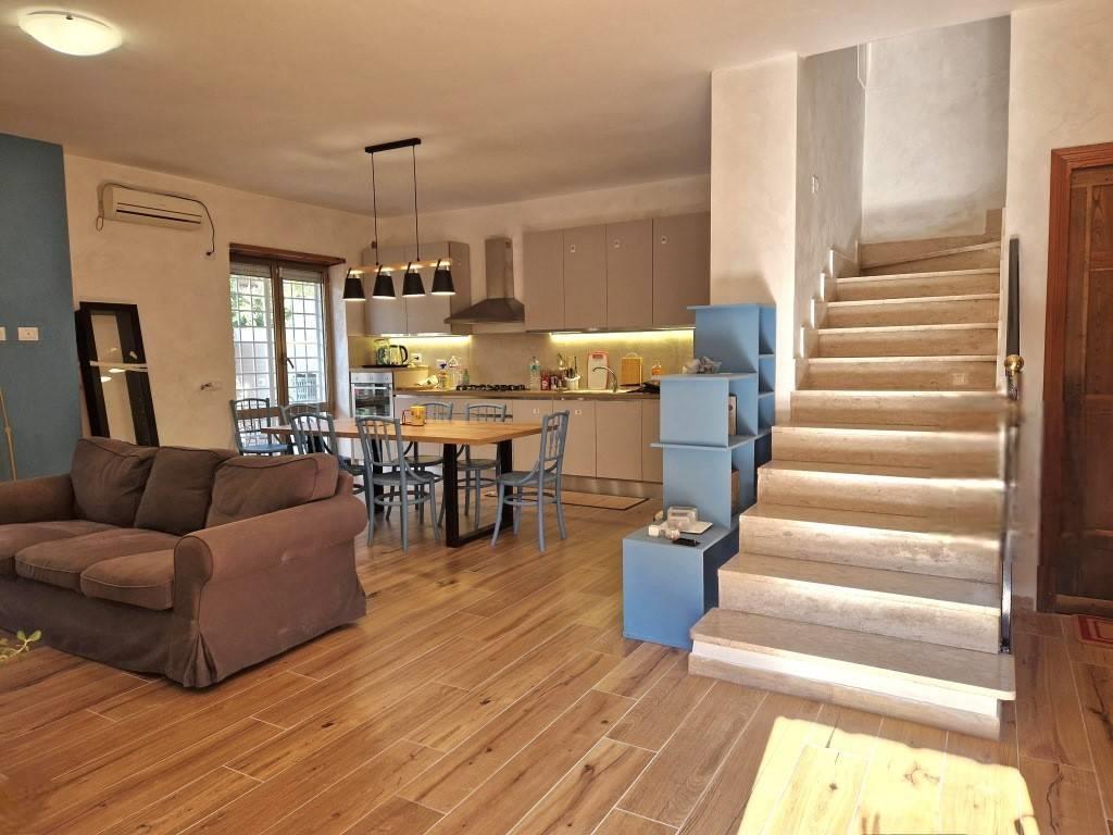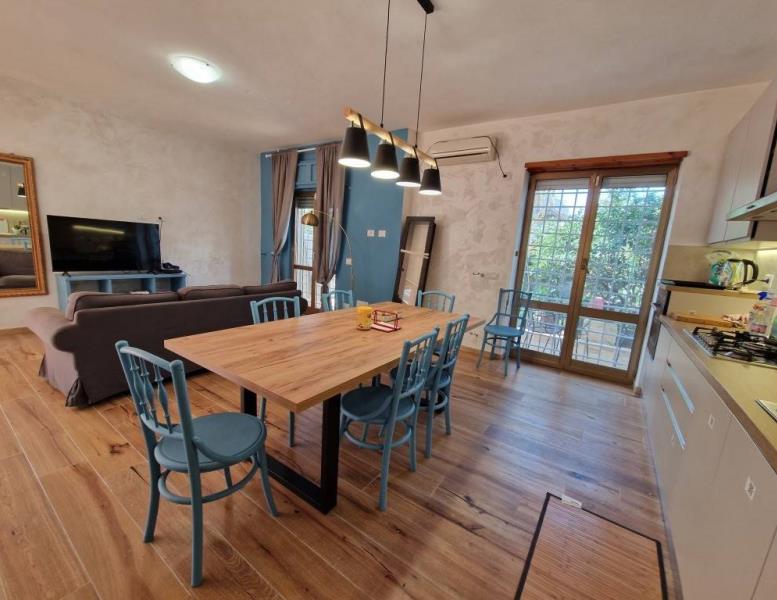 L'appartamento è completamente ristrutturato e presenta un ampio soggiorno living con angolo cottura. La cucina moderna è attrezzata con lavastoviglie e due frigoriferi, perfetta per chi ama cucinare. Inoltre, sono presenti pannelli solari elettrici e un pannello solare termico per acqua calda, che permettono di risparmiare sulle bollette di luce e gas. Ogni camera è dotata di un proprio contatore per il consumo dell'energia elettrica.