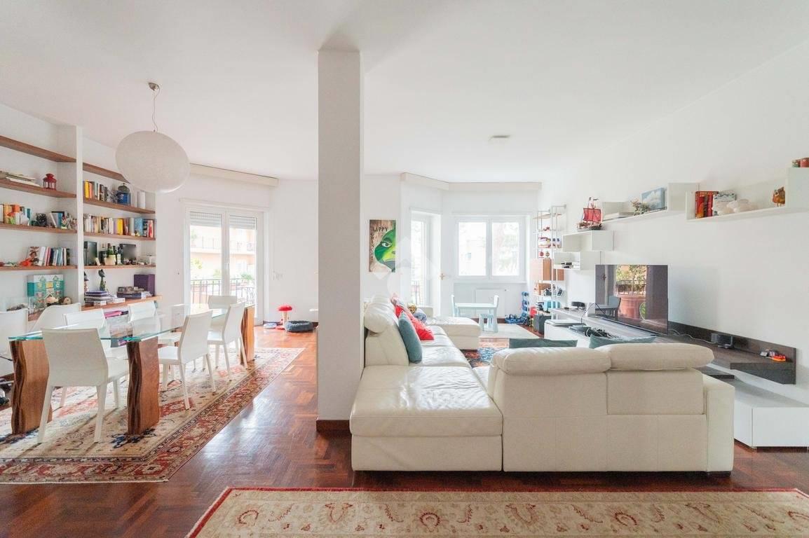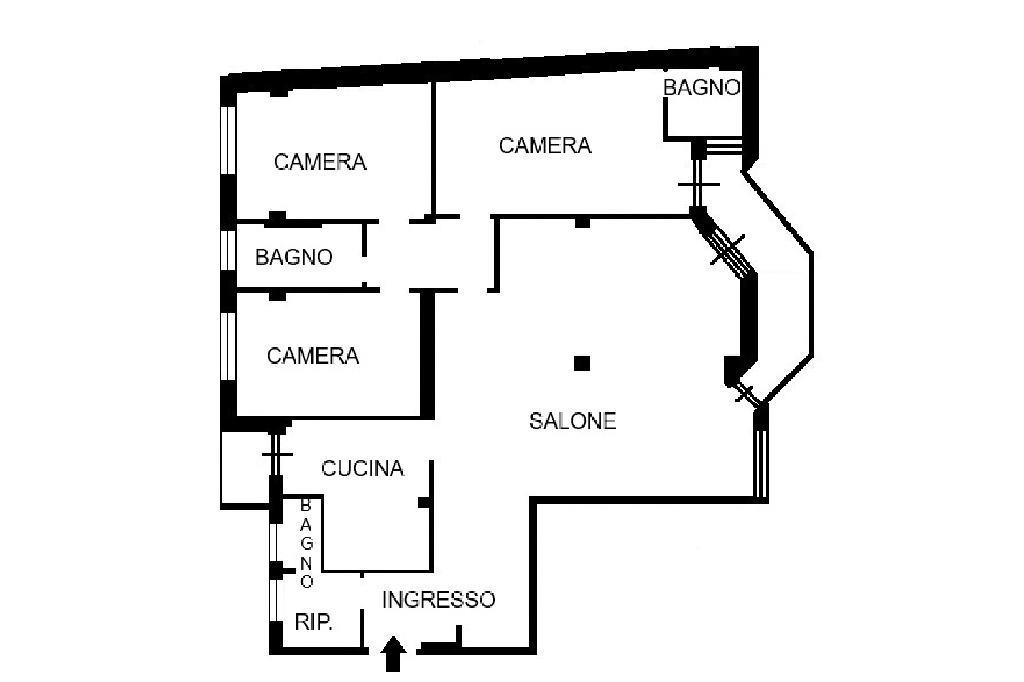 L'immobile internamente è composto da: ingresso, salone doppio con libreria a muro, cucina abitabile, 3 camere matrimoniali, zona di servizio, 3 bagni, 2 balconi e corridoio.