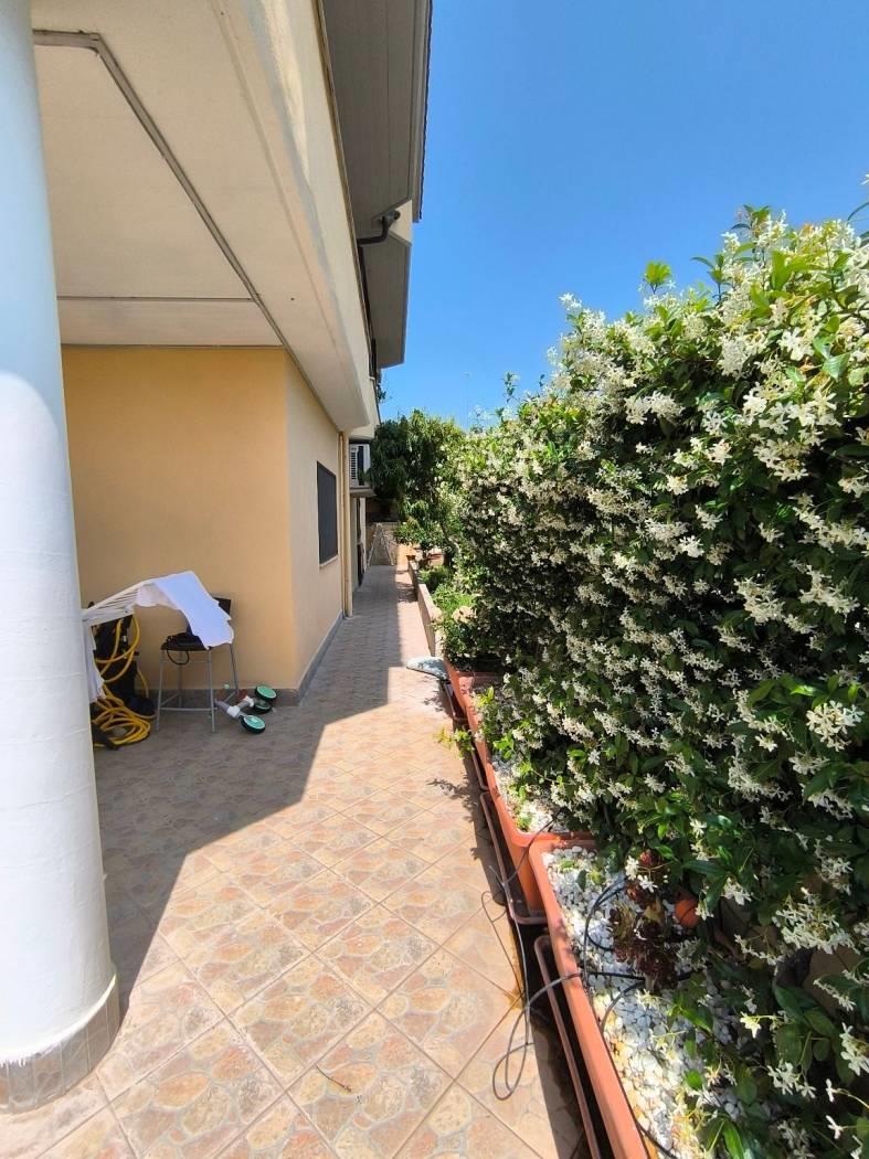 Appartamento completamente ristrutturato perchè di recente costruzione ANNO 2008. Si sviluppa su due piani. A livello strada c'è lìampio soggiorno con cucina grande abitabile e lavanderia. Inoltre una camera di servizio con relativo bagno. Nel corridorio a lato si affacciano le altre due camere da letto di cui una matrimoniale con un secondo bagno. Tutto intorno alla casa c'è il terrazzo che circonda i 3 lati dell'immobile. Al piano superiore con scala interna si trova la seconda camera matrimoniale patronale con bagno interno con vasca e un terrazzo con vista. Tutto l'appartamento è arredato come si può notare dalle foto con arredamento nuovo. Ci sono le grate alle finestre e le porte sono blindate. E' dotato di condizionari per tutti gli ambienti. C'è la possibilità di parcheggiare comodamente accanto alla palazzina che fa parte di una palazzina con altri appartamento su due piani. Ape E. Richiesta di euro 250.000,00. Per un contatto diretto chiamare il 329/8031916 Scotton.