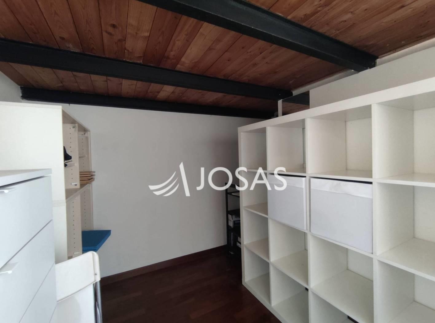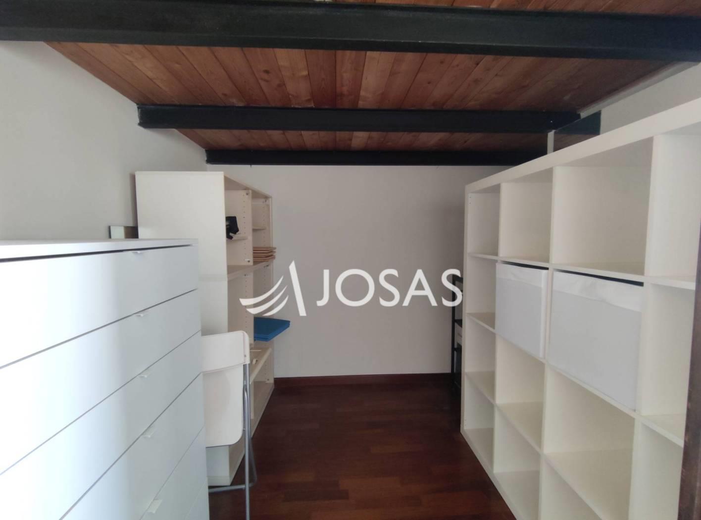 In fondo al soggiorno un disimpegno con finestra consente di accedere al soppalco che ospita il letto matrimoniale e, nella zona sottostante il soppalco, la cabina armadio/ripostiglio.