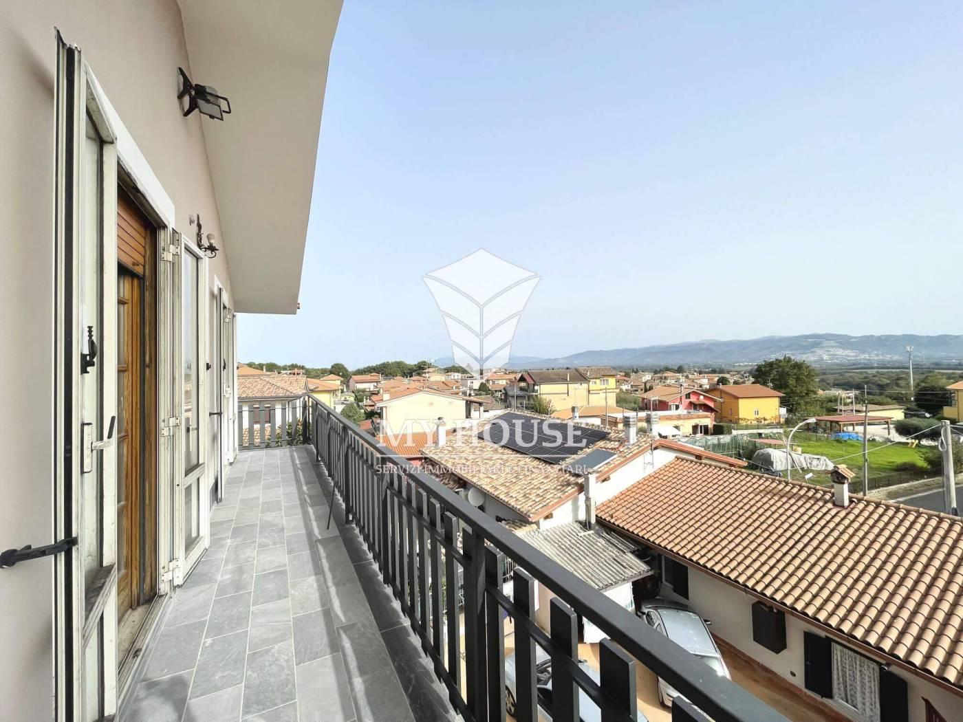palestrina: nella graziosa frazione di carchitti, piu’ precisamente in via sabotino, posizione centralissima adiacente tutti i servizi raggiungibili a piedi, a 2km da via casilina, 6km dal casello autostradale di san cesareo e 4km dalla stazione fs di zagarolo. localita’ servita da scuolabus e navetta. in palazzina in tinta recentemente ristrutturata ed in ottimo stato, a conduzione familiare composta da solo tre unita’ abitative….la my house ha il piacere di proporre in vendita un appartamento trilocale, posto al piano 2° ultimo, molto luminoso e panoramico! termoautonomo e in buono stato, di mq 100 c.a. e composto come segue: ingresso, ampio soggiorno con termostufa a pellet, cucina abitabile, balcone comunicante con vista sul paese. disimpegno, un bagno grande con vasca e doccia, due ampie camere da letto, entrambi, con balcone comunicante. annesso un posto auto all’ interno del piazzale. no spese condominiali mensili. utenze dirette comunali. arredo in accordo con il proprietario. da vedere!