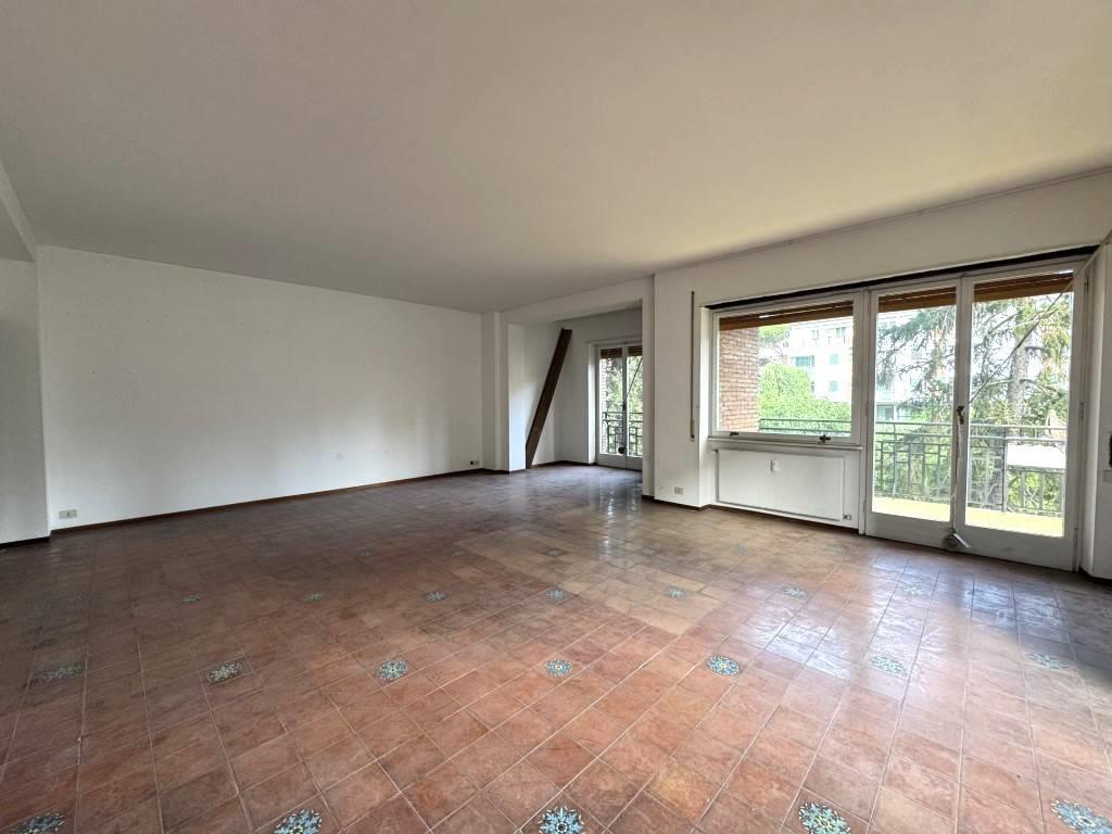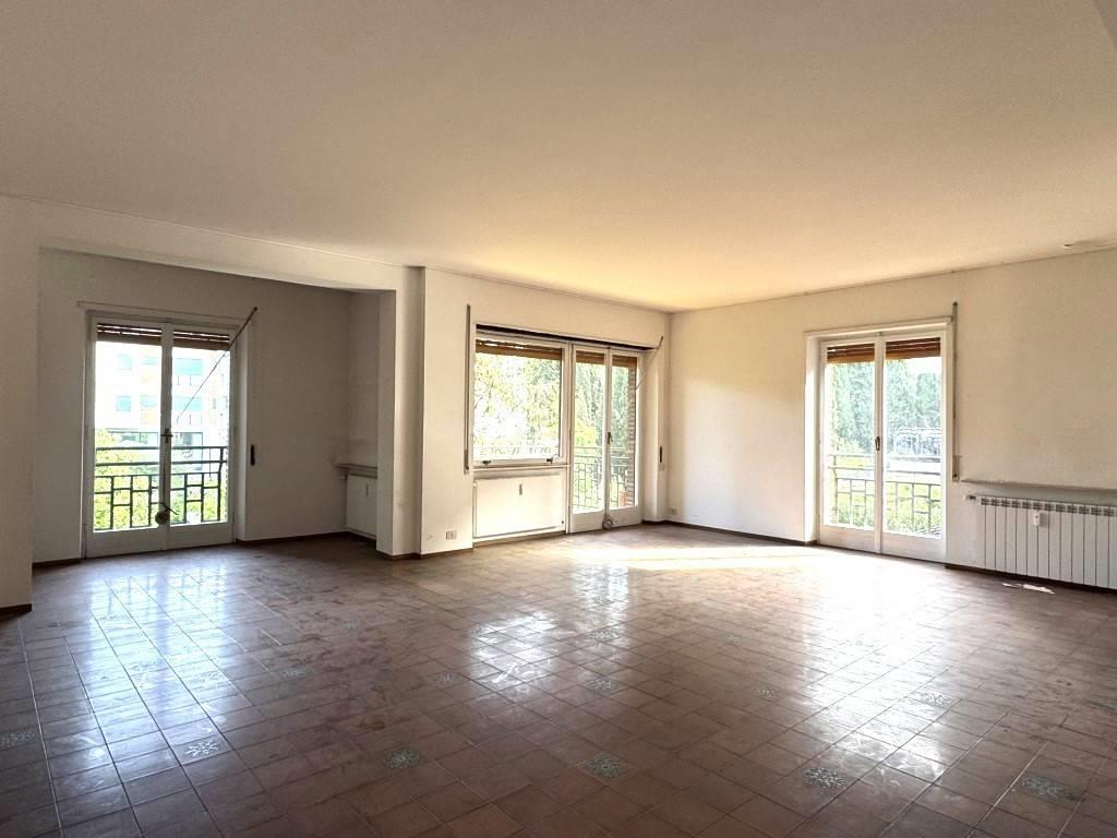 Si compone di ampio ingresso padronale con guardaroba, salone di circa 50 mq. a pianta quadrata con finestre su tre lati che gli conferiscono una spiccata luminosità. Da una porta finestra si accede ad un piacevole terrazzino abitabile. La zona notte è attualmente composta da tre camere da letto matrimoniali ed un bagno. La zona servizi è dotata di un secondo ingresso indipendente, una cucina con annesso tinello e ripostiglio, cameretta e bagno di servizio, ed un balcone con accesso sia dalla cucina che dalla camera di servizio.
