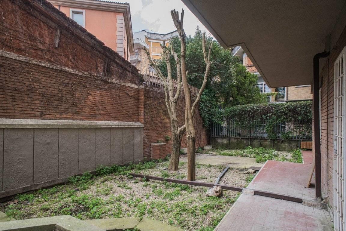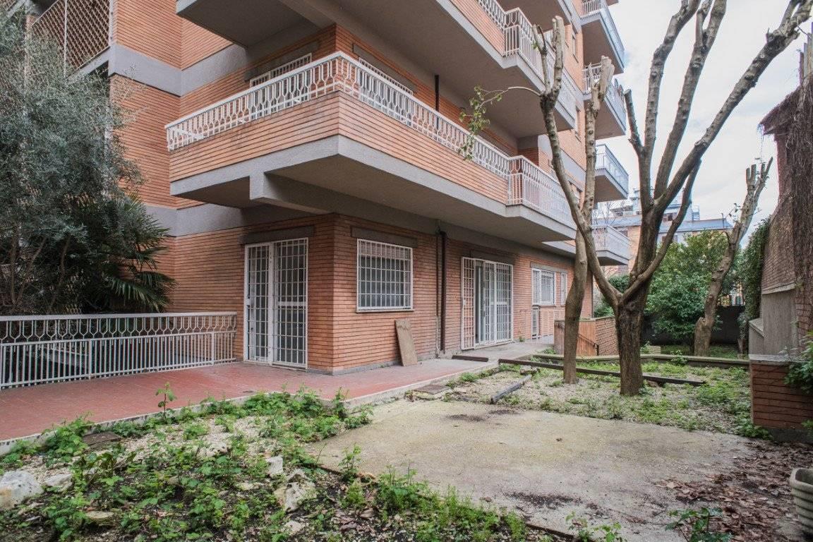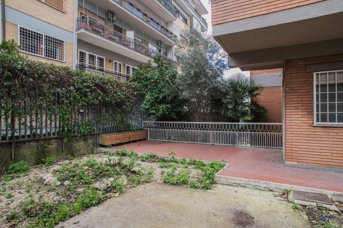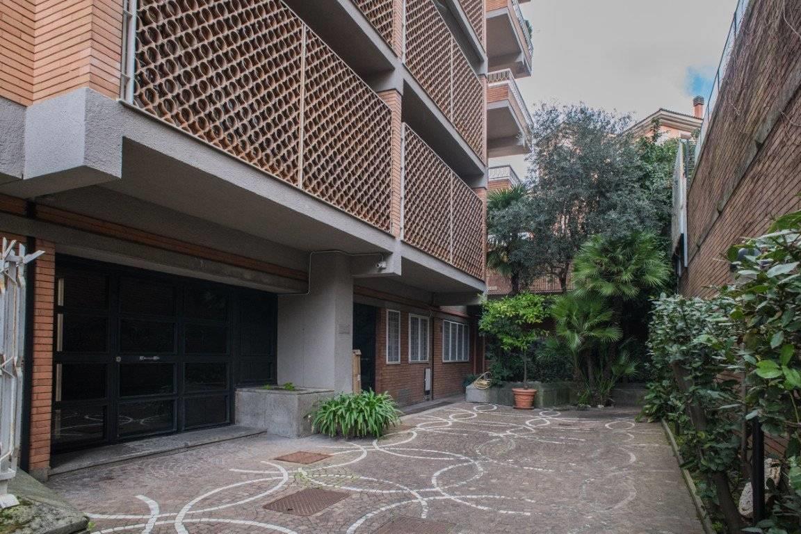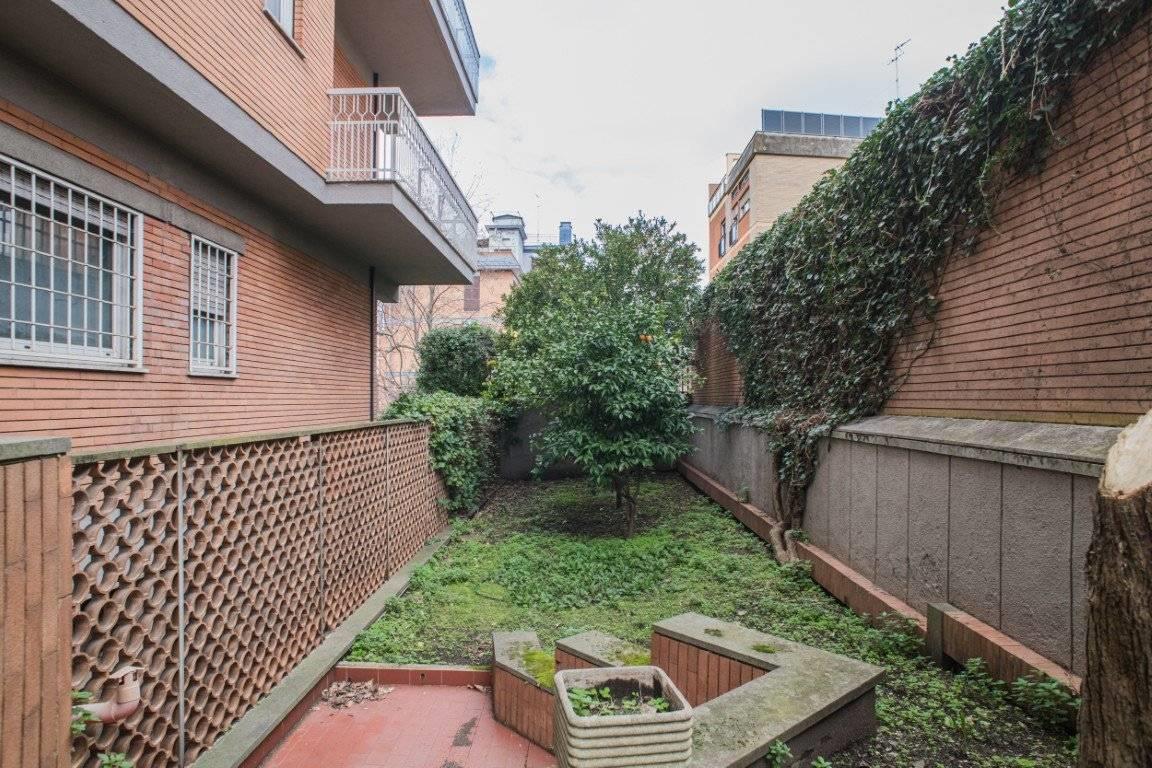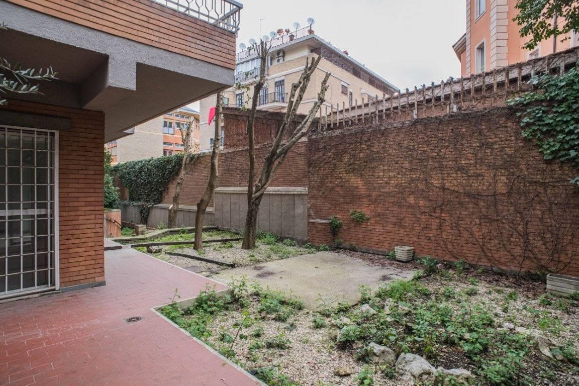 L'esposizione defilata rispetto a Via Trionfale rende l'appartamento particolarmente silenzioso, inoltre è circondato da un ampio giardino perimetrale di proprietà, di circa 190 mq, in parte pavimentato ed in parte a prato.