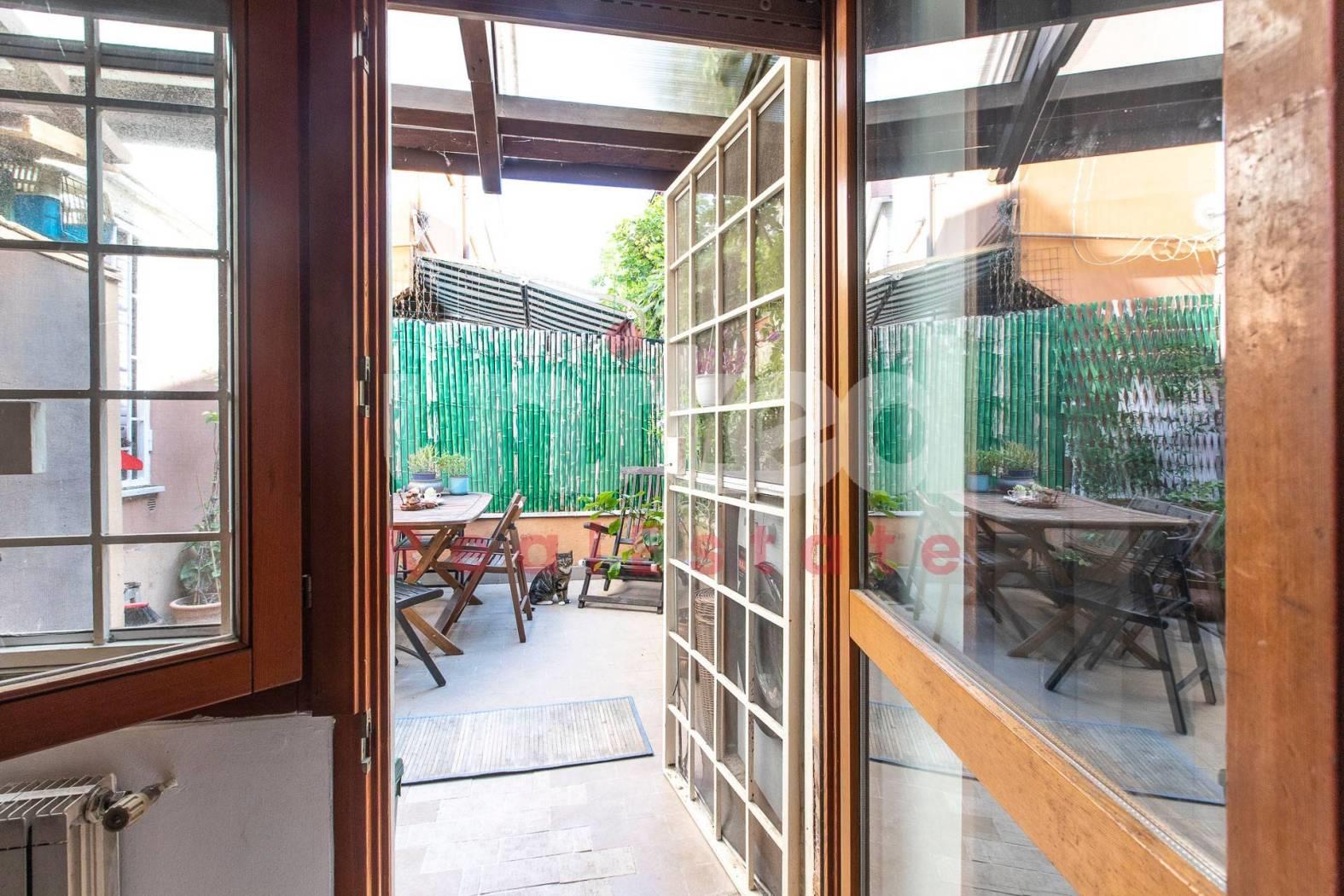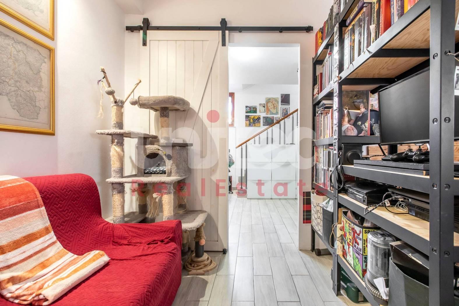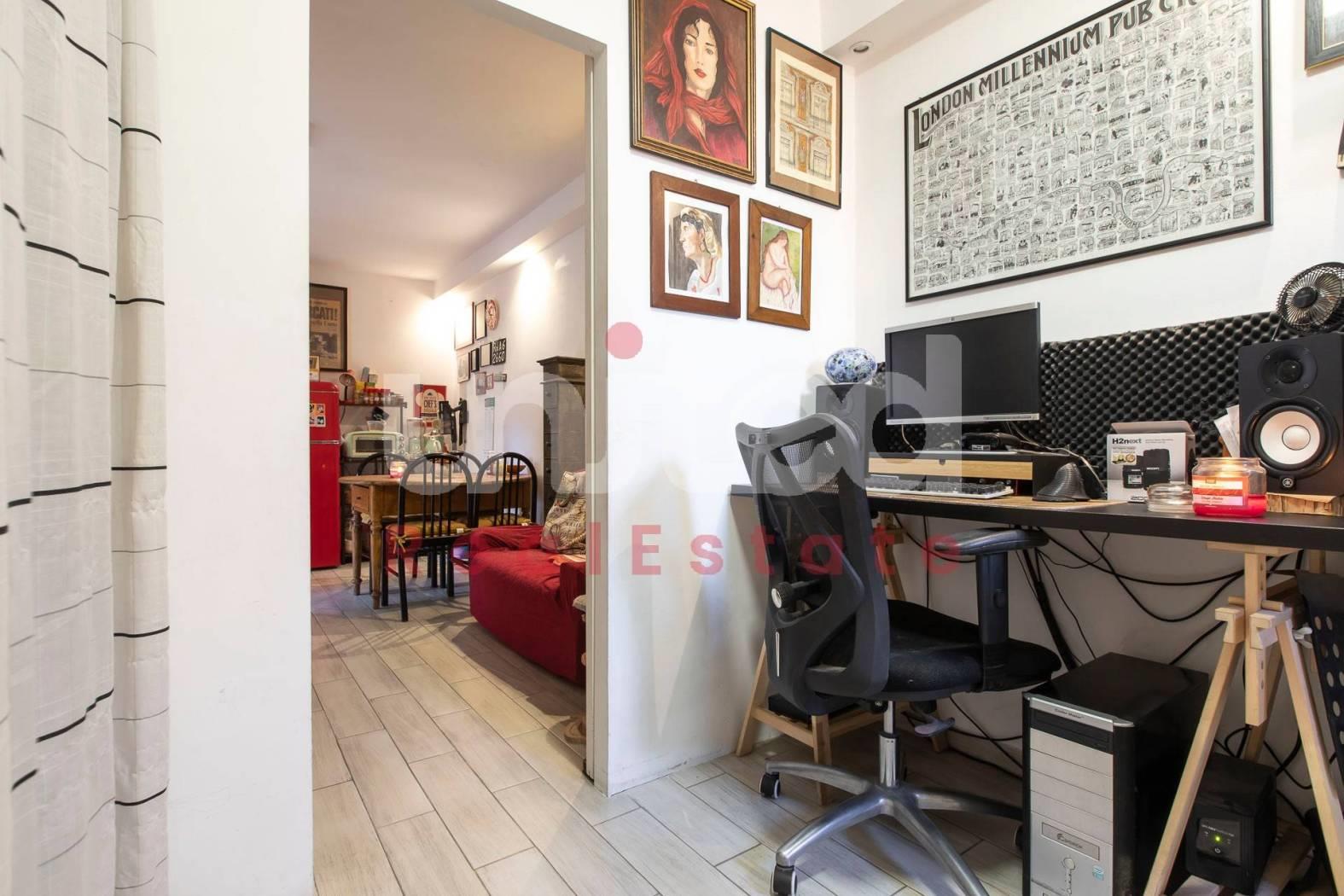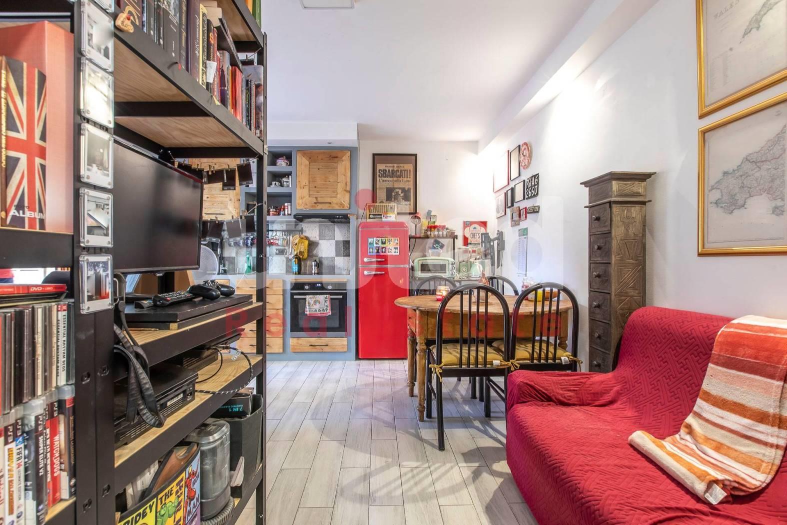 L'appartamento è composto da un unico ambiente, dove convivono zona giorno e zona notte, un bagno separato e una piccola area esterna.