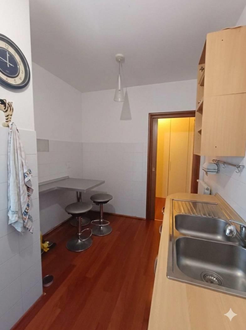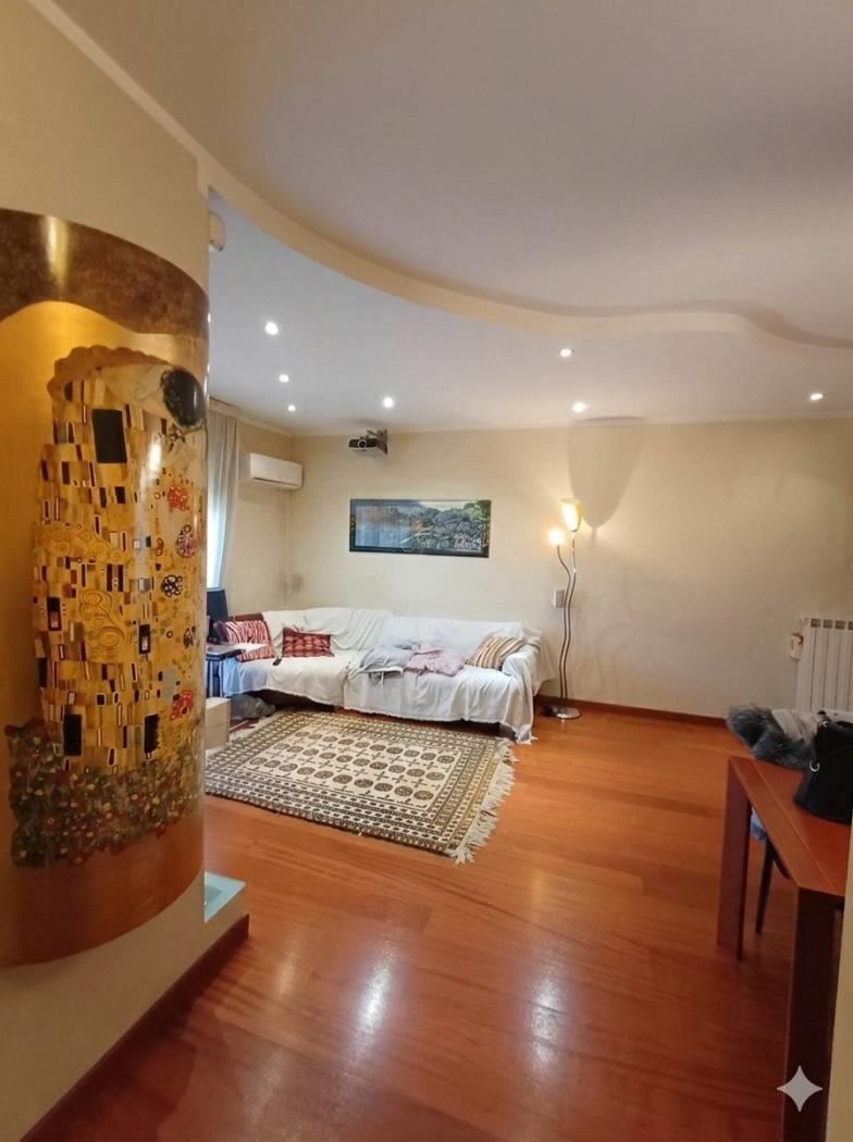 L'appartamento si distingue per l'eleganza del parquet Listone Giordano, che riveste l'intera superficie, donando calore e prestigio ad ogni ambiente.