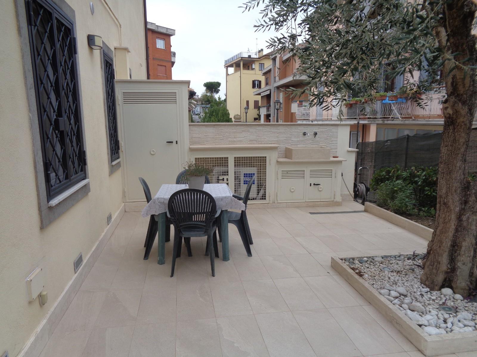 Casalotti via di Boccea, altezza civico 650, adiacenze centro commerciale Agorà, proponiamo in locazione appartamento in ottimo stato, ristrutturato, parzialmente arredato, sito al piano terra di una palazzina di tre piani, doppia esposizione, composto da soggiorno a vista con angolo cottura, camera letto, bagno con doccia, ripostiglio, giardino angolare pavimentato, posto auto scoperto, infissi in pvc bianchi, inferriate, porta blindata ad un'anta, zanzariere, impianto elettrico con messa a terra, video citofono, climatizzatori con pompa di calore caldo/freddo, termo autonomo, classe energetica F, ipe 88,40 kw/m2 anno, euro 800,00 mensili, contratti di locazione concordati (3 anni+2) a referenziati. - NO ANIMALI . Per ulteriori informazioni potrete contattare i seguenti numeri telefonici 333-3068022 334-1478700 334-3496886 334-2059957.
