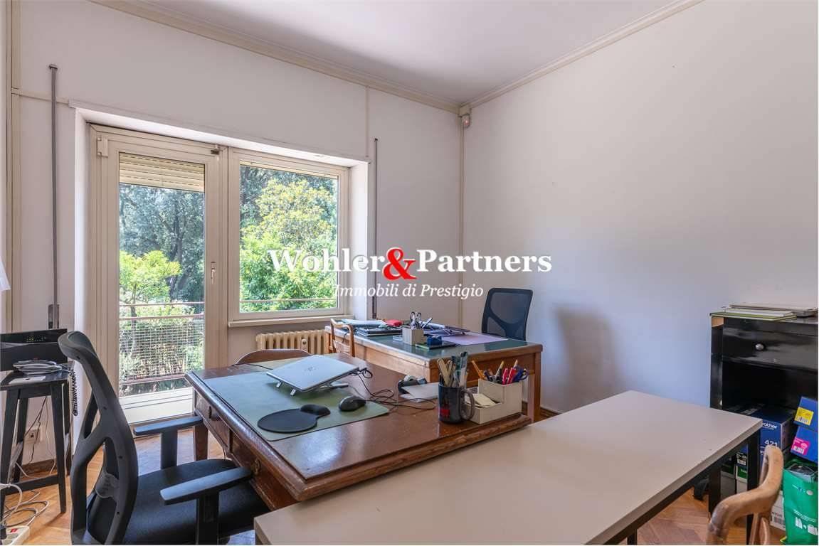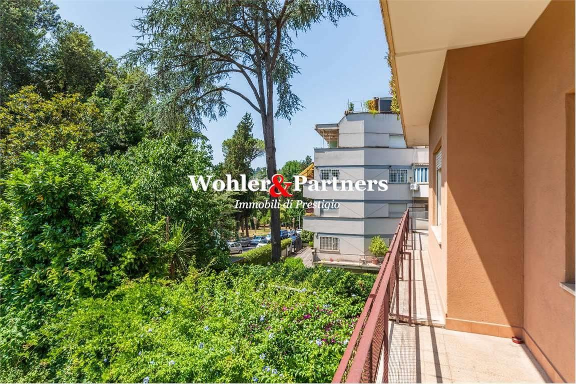 Luminoso appartamento posto al primo piano (affaccio da secondo), sul verde affaccio su tre lati est-sud-ovest di circa mq.165 all'interno di uno stabile signorile con servizio di portierato. Composto da; ingresso, salone doppio con accesso al 1° balcone perimetrale di circa mq.20 - 3 camere letto, 3 bagni, cucina semi abitabile con balcone, camera di servizio.