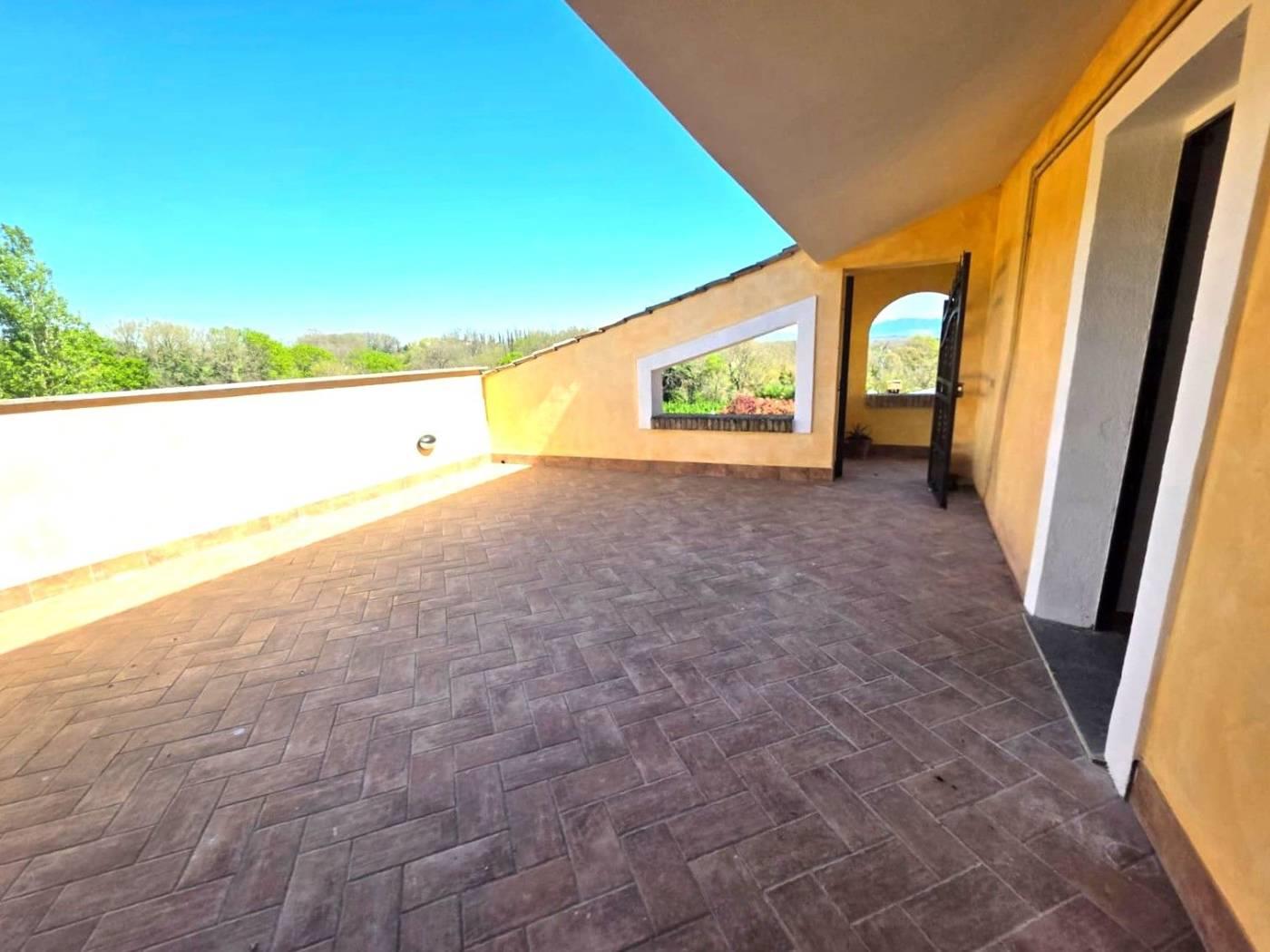 In contesto residenziale appartamento al piano primo con accesso indipendente, sviluppato per complessivi 95 mq oltre a circa 40 mq di terrazza. Posizione panoramica e soleggiata all’interno del compound privato ed esclusivo, con ingresso privato ed indipendente dal viale comune e dall’aera parcheggio esterna, è distribuito in soggiorno con camino e ampia terrazza, cucina abitabile e bagno al piano di ingresso. Al piano superiore collegato con scala interna, due camere dal letto con bagno. Completa la proprietà il locale garage al piano interrato dell’edificio. Rifinito con cura e attenzione per ogni dettaglio, offre una soluzione abitativa di prestigio in contesto esclusivo.