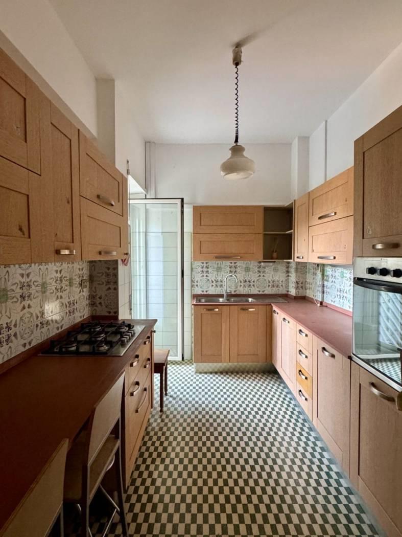 L’ingresso si apre su un ampio soggiorno, dotato di comodo armadio a muro e su una cucina abitabile, entrambi con accesso diretto al balcone.