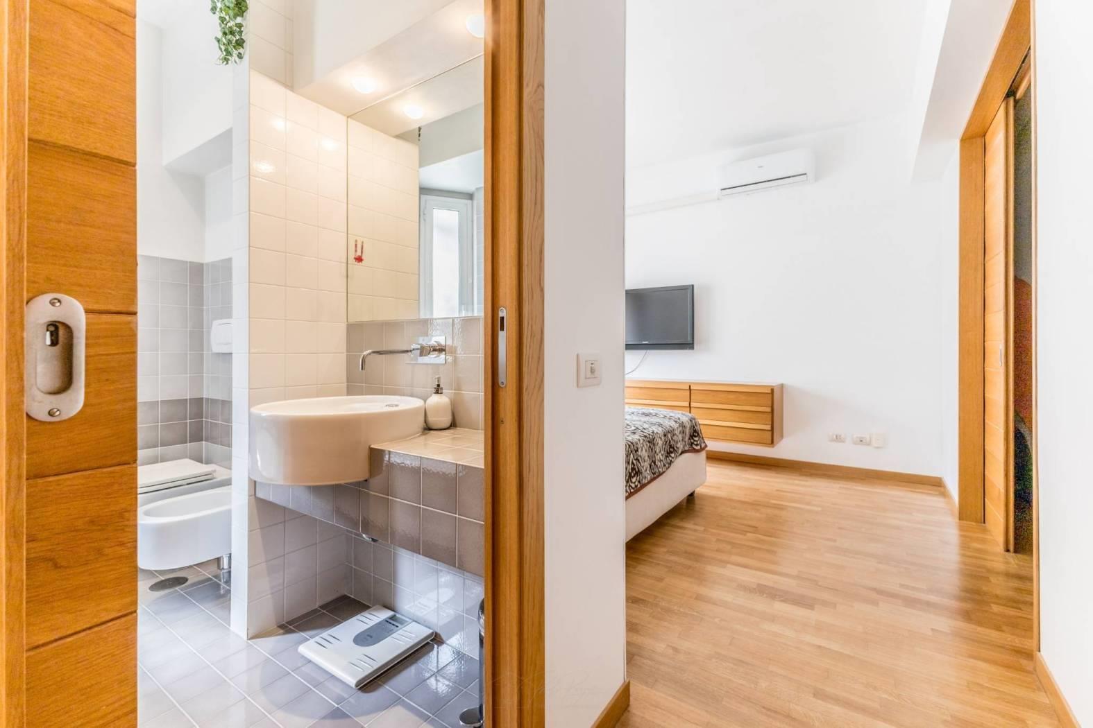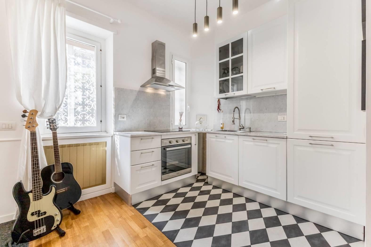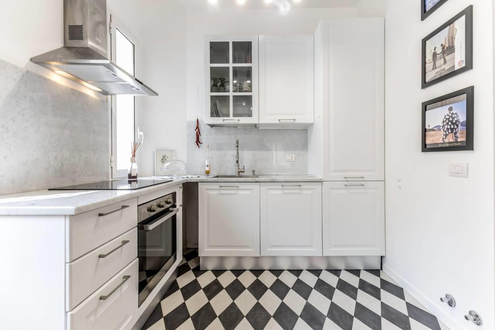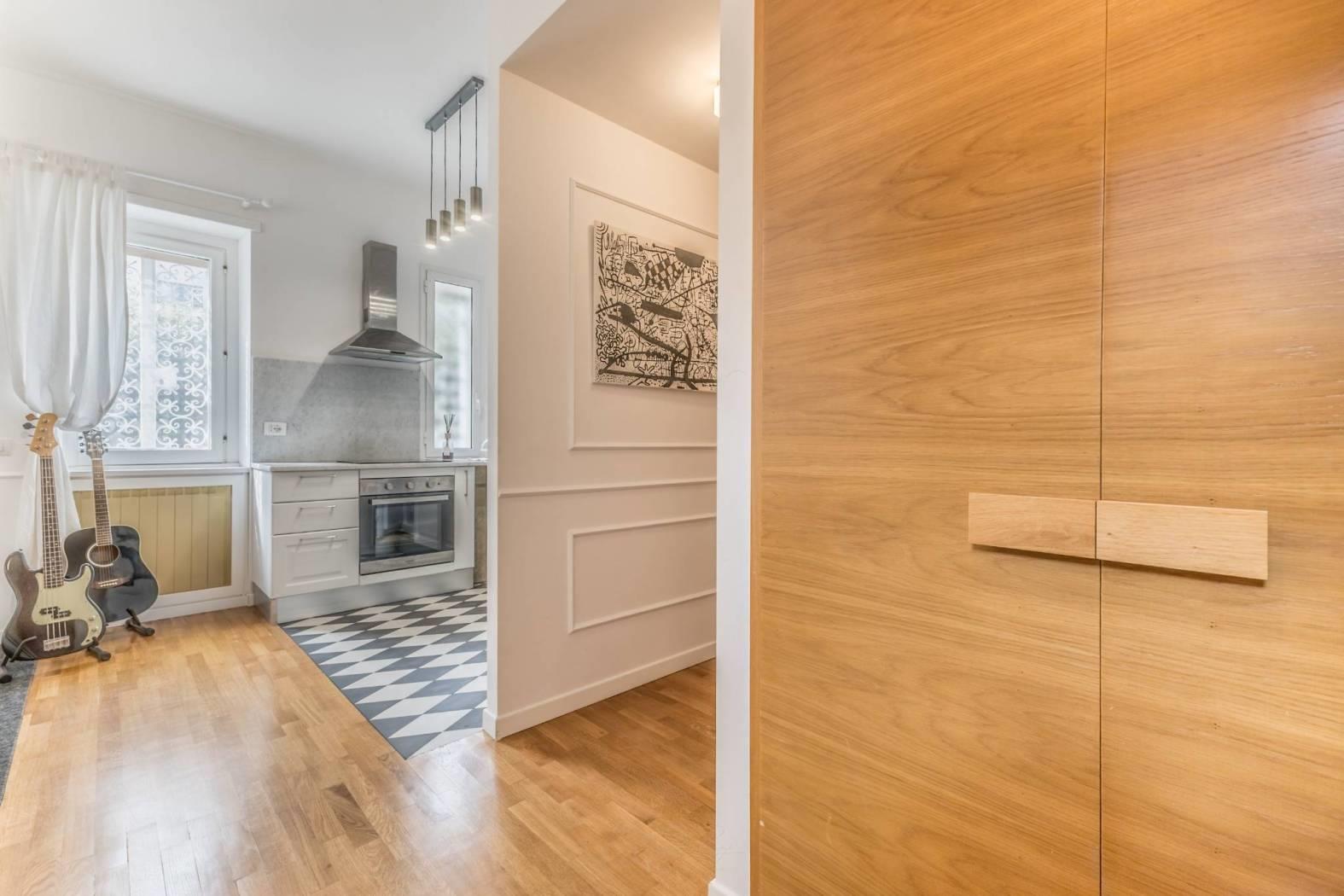 Composizione: ingresso con armadio a muro, soggiorno accogliente, angolo cottura arredato a induzione, lavanderia/ripostiglio molto utile per organizzare gli spazi, camera matrimoniale con ampia cabina armadio di 4 mq circa e bagno con finestra.