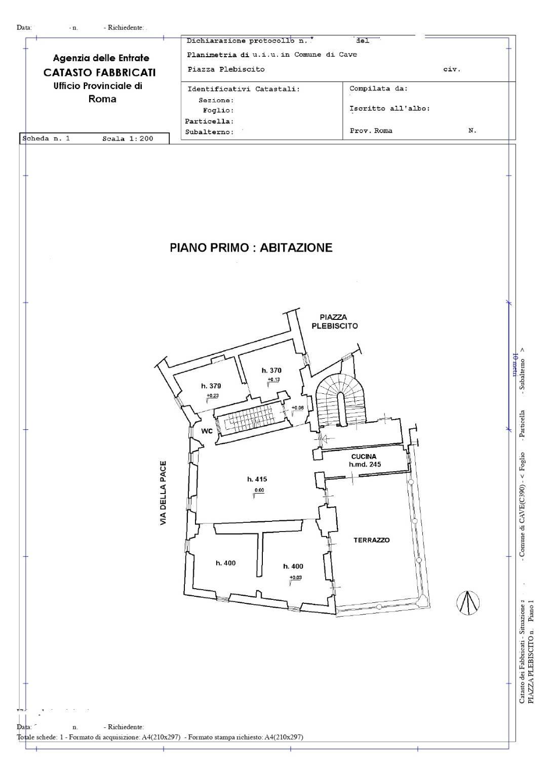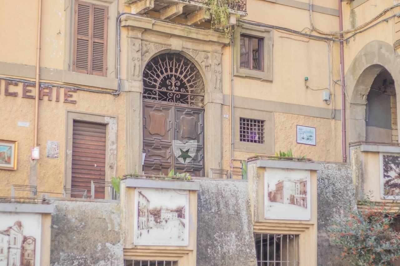 Cave Centro Storico Piazza del Plebiscito, in Palazzo Nobiliare di epoca Rinascimentale appartenuto alla nota Famiglia Mastricola Mancini RE Immobiliare vende appartamento luminosissimo con tripla esposizione, con pareti caratterizzate da dipinti a tempera raffiguranti le Legioni Romane e da soffitti in legno a cassettoni con altezza 4 metri. L’immobile è composto da salone quadruplo con due finestre panoramiche sulla vallata ed una porta finestra dalla quale si accede ad una meravigliosa terrazza di circa 70mq ,una cucina anche essa con porta finestra sulla terrazza, quattro camere matrimoniali ed un bagno con possibilità di crearne un secondo. Tre magazzini-cantina ed un piccolo terreno adibito ad orto completano questa affascinante proprietà. Euro 180.000,00