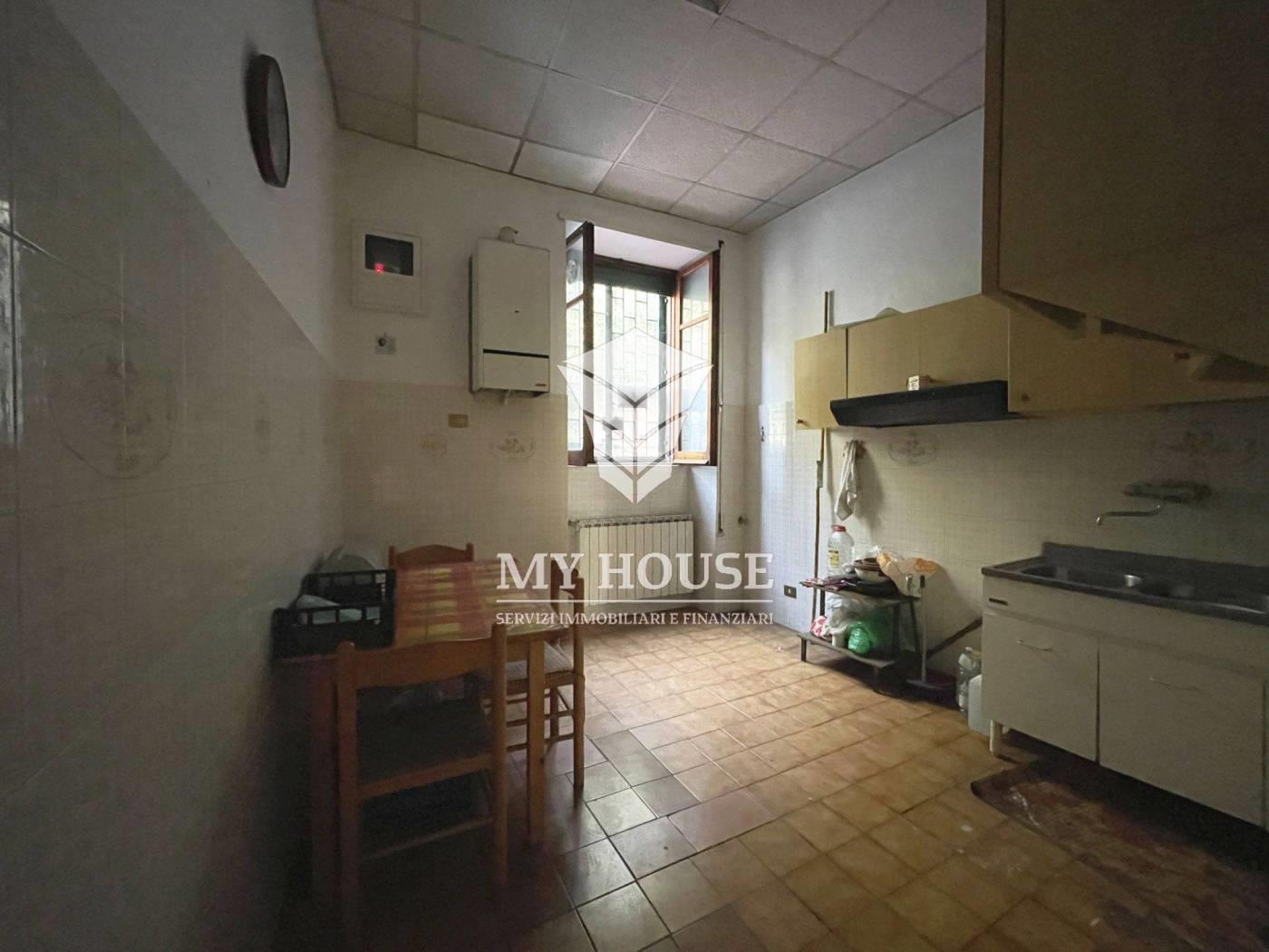 stato immobile: da ristrutturare, rinnovare e distribuire nuovi spazi interni, portone blindato, pavimentazione in marmitte di marmo, impianto termico con radiatori, infissi doppio vetro in alluminio con grate esterne di sicurezza, citofono.