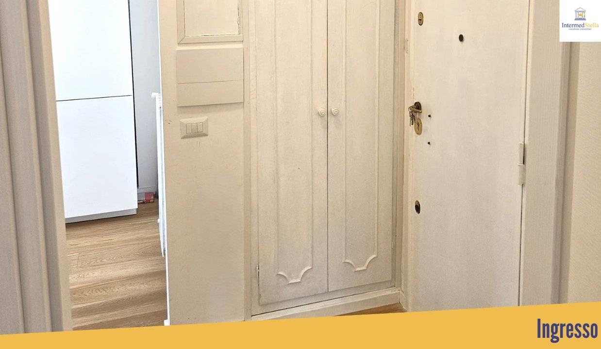 All’ingresso troviamo un comodo armadio a muro,la pavimentazione è in parquet prefinito, gli infissi sono in doppio vetro Pvc.
