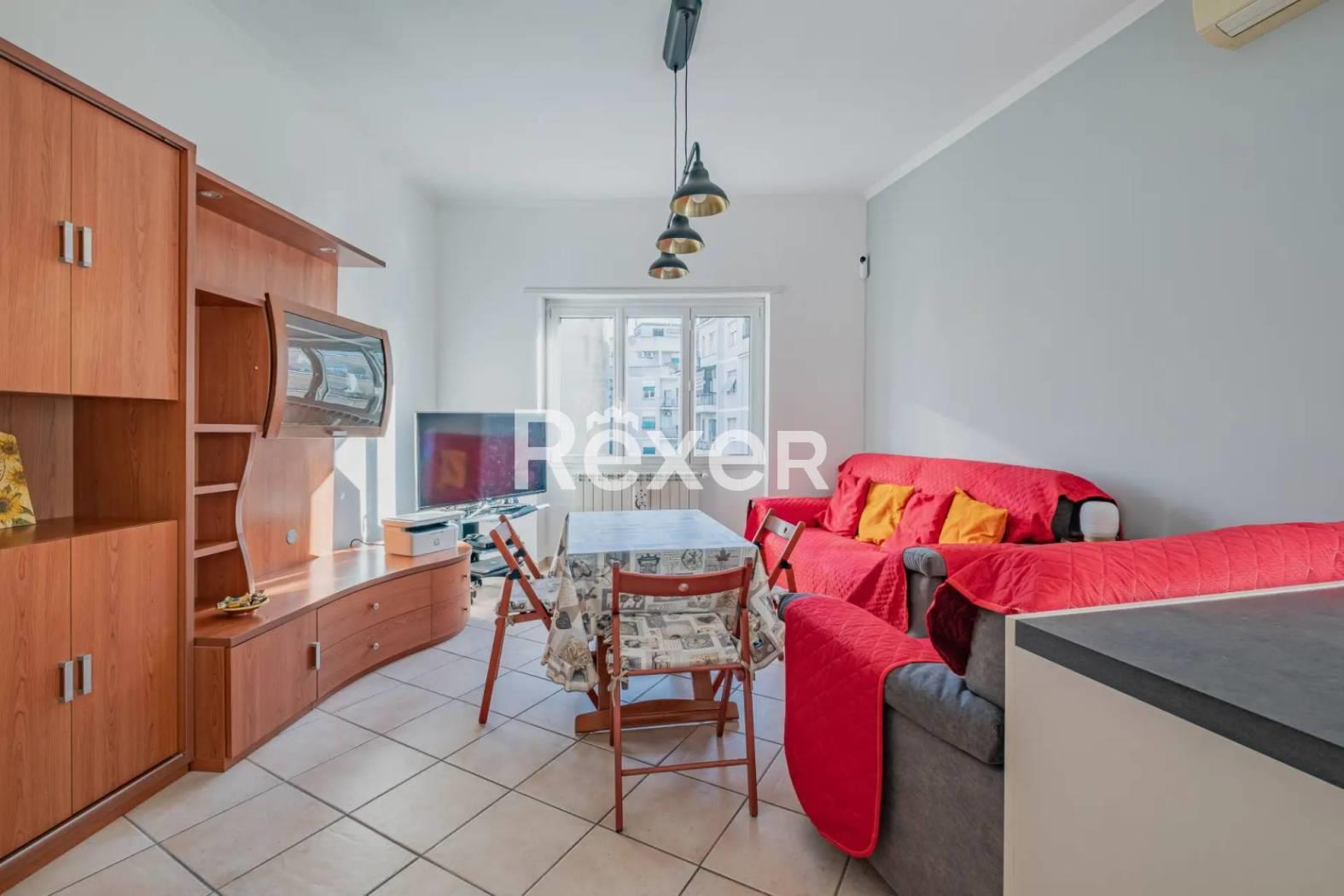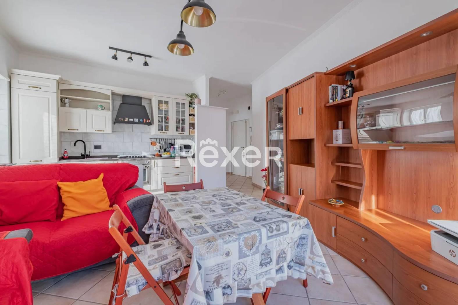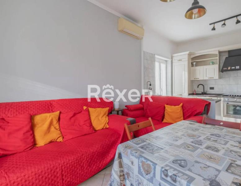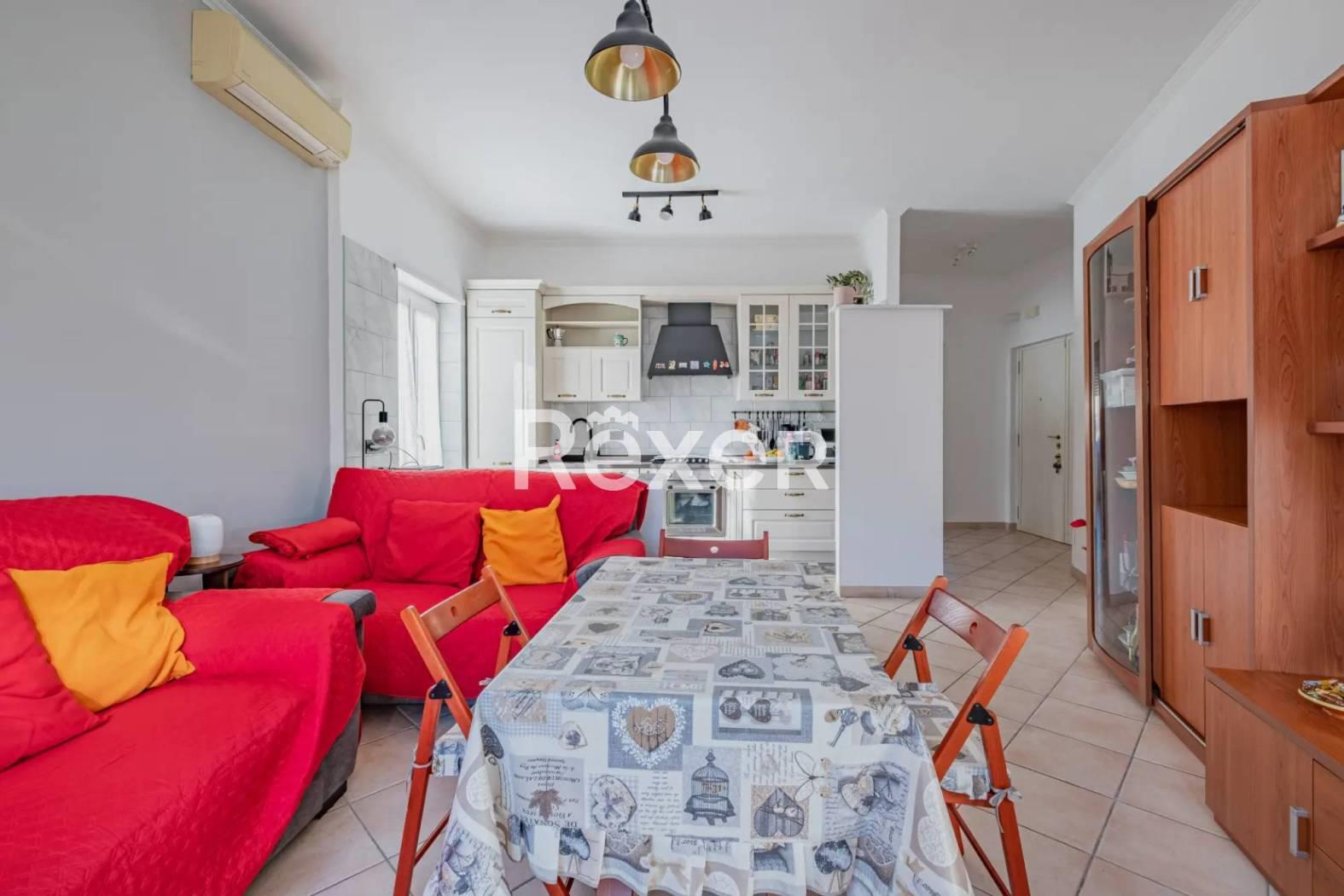 L’immobile si compone di ingresso, ampio salone con cucina a vista, due camere da letto matrimoniali, bagno, ripostiglio, soppalco e due balconi. È dotato di porta blindata, condizionatori, serrande elettriche e infissi in PVC recentemente sostituiti. Il riscaldamento è autonomo e la caldaia è stata appena sostituita.