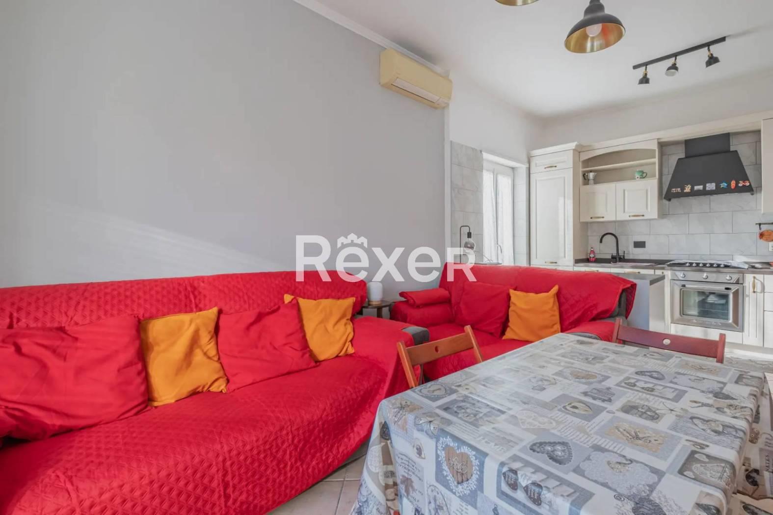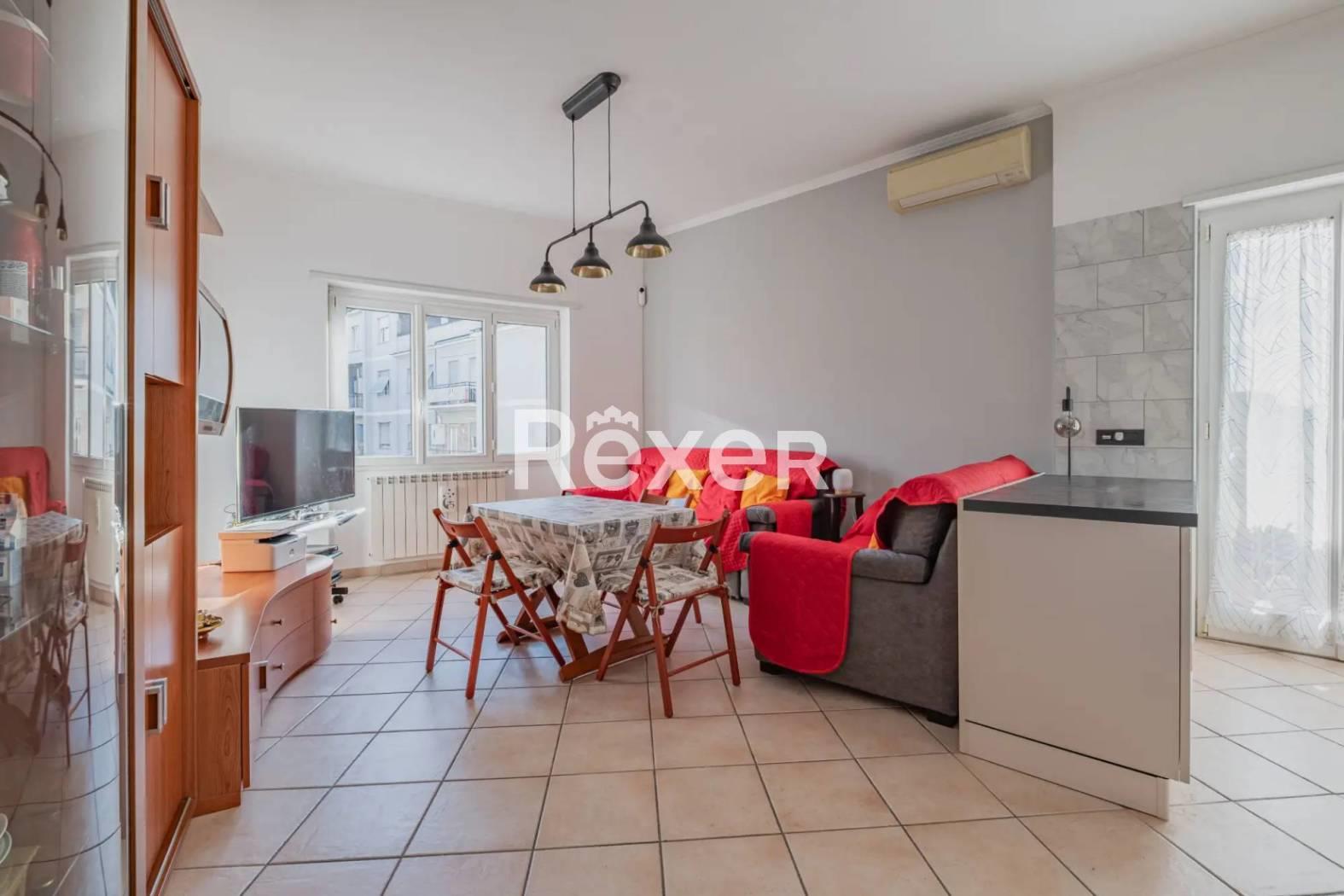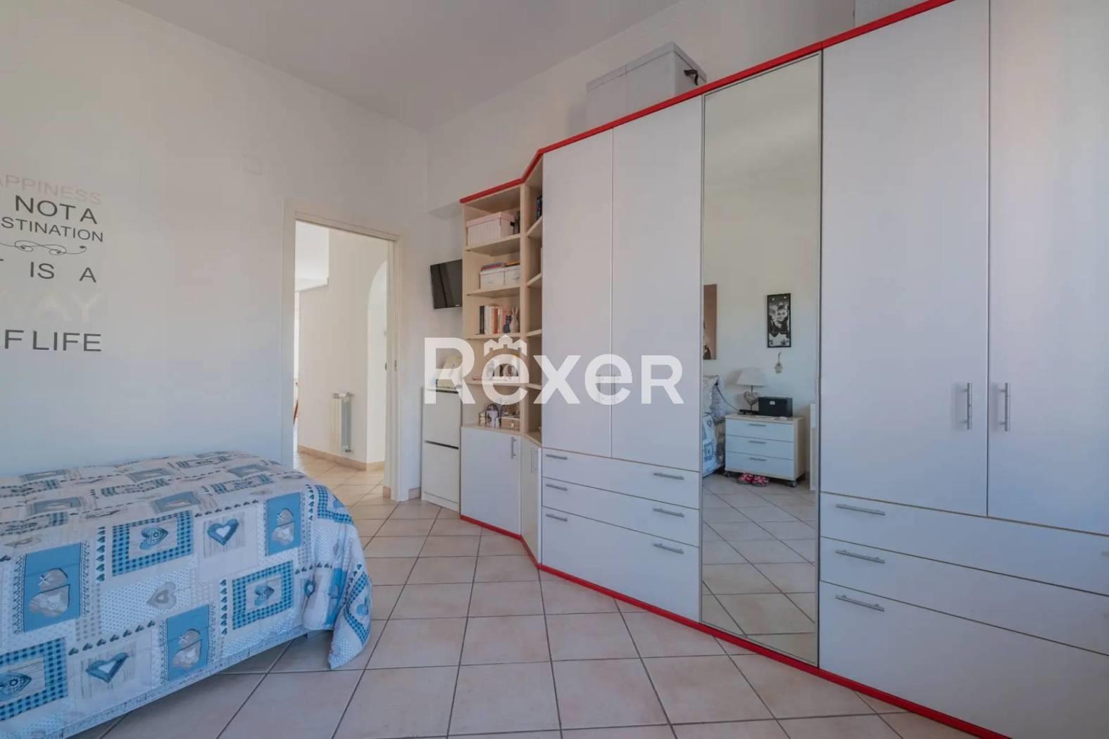 L’immobile si compone di ingresso, ampio salone con cucina a vista, due camere da letto matrimoniali, bagno, ripostiglio, soppalco e due balconi. È dotato di porta blindata, condizionatori, serrande elettriche e infissi in PVC recentemente sostituiti. Il riscaldamento è autonomo e la caldaia è stata appena sostituita.