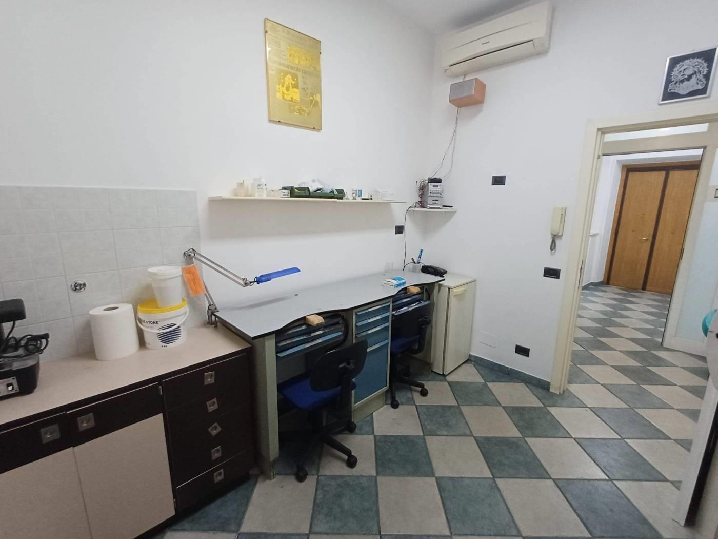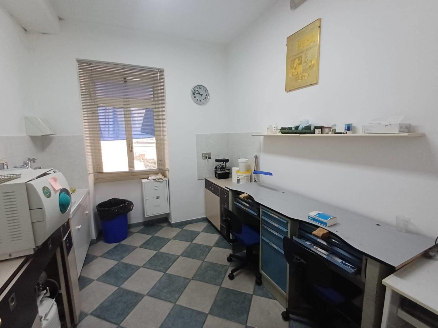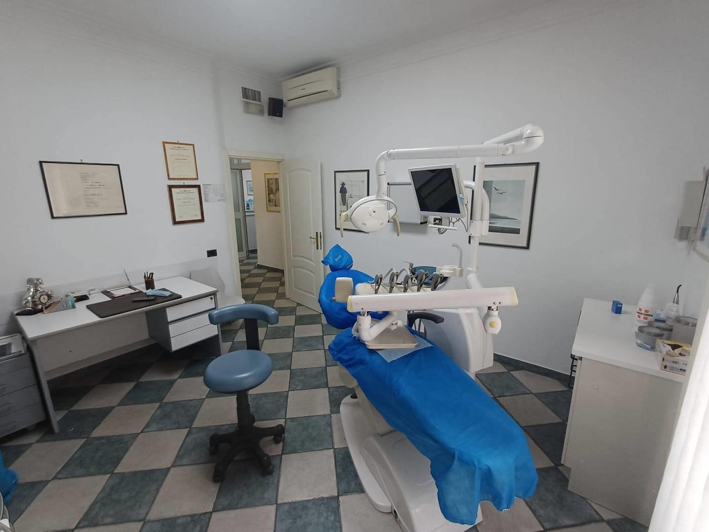 Lo studio è posto all'interno di uno stabile in tinta al piano rialzato ed internamente risulta così composto: sala di attesa e reception, due sale con poltrone ed accessori, una sala per laboratorio e sterilizzazione completo di accessori per l'attività e doppi servizi!