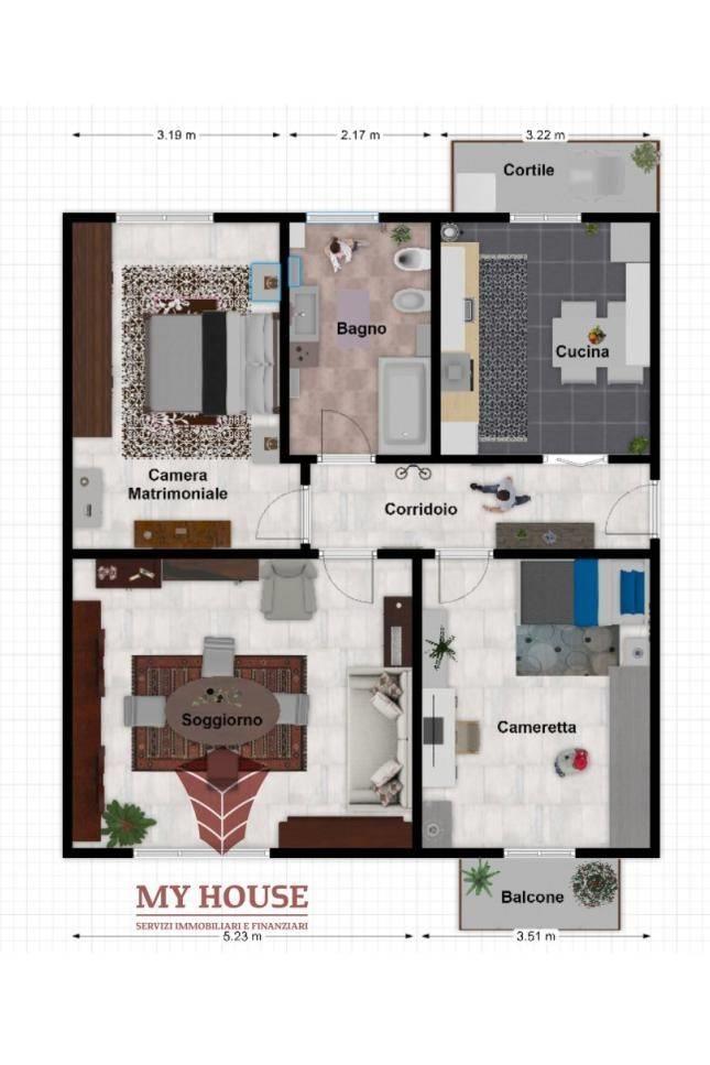 mq: 80 di casa con balcone di mq 5 e cantina di mq 10.