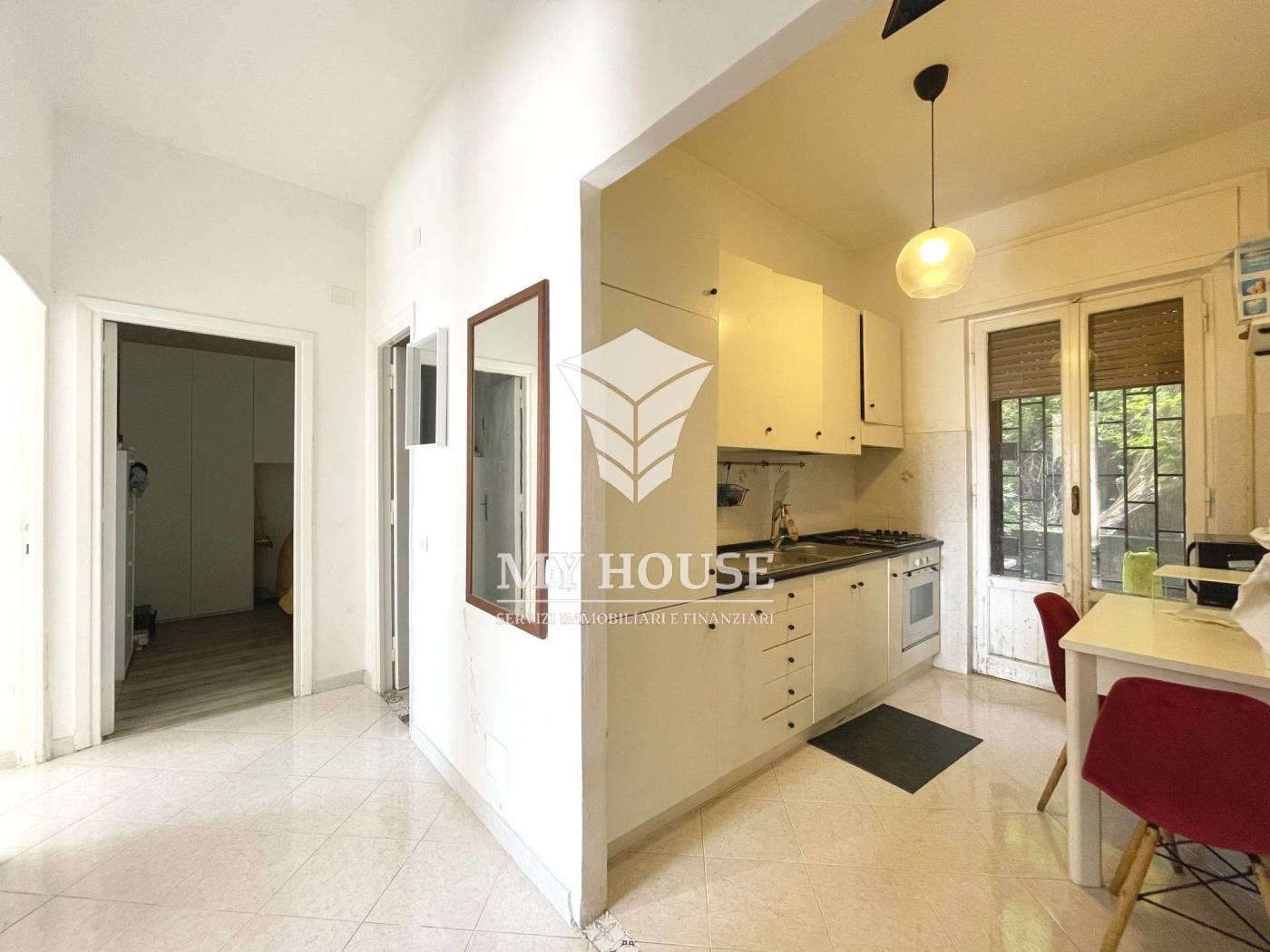 e composto come segue: ingresso..corridoio centrale, cucina semi abitabile, un comodo soggiorno, un bagno grande con cabina doccia e due ampie camere da letto di cui con balcone panoramico. dalla cucina si ha accesso su una piccola retro corte con locale tecnico e lavatoio. utenze dirette comunali. annessa una cantina di mq 10. ottima per uno spazio aggiuntivo! buona disponibilita’ di parcheggio sotto casa, (strada a fondo chiuso). ideale per qualsiasi clientela, per uno studio professionale o per uso investimento.