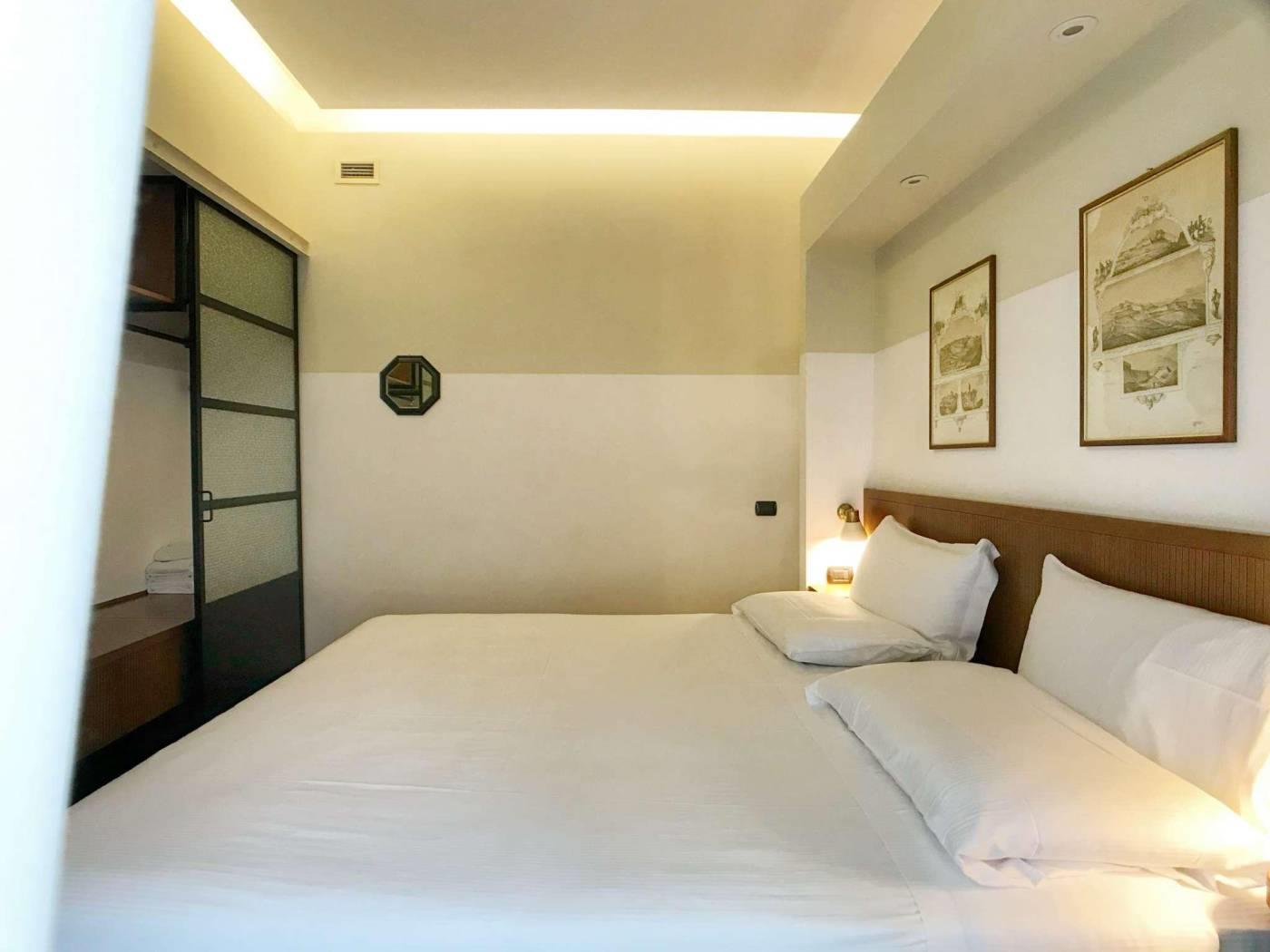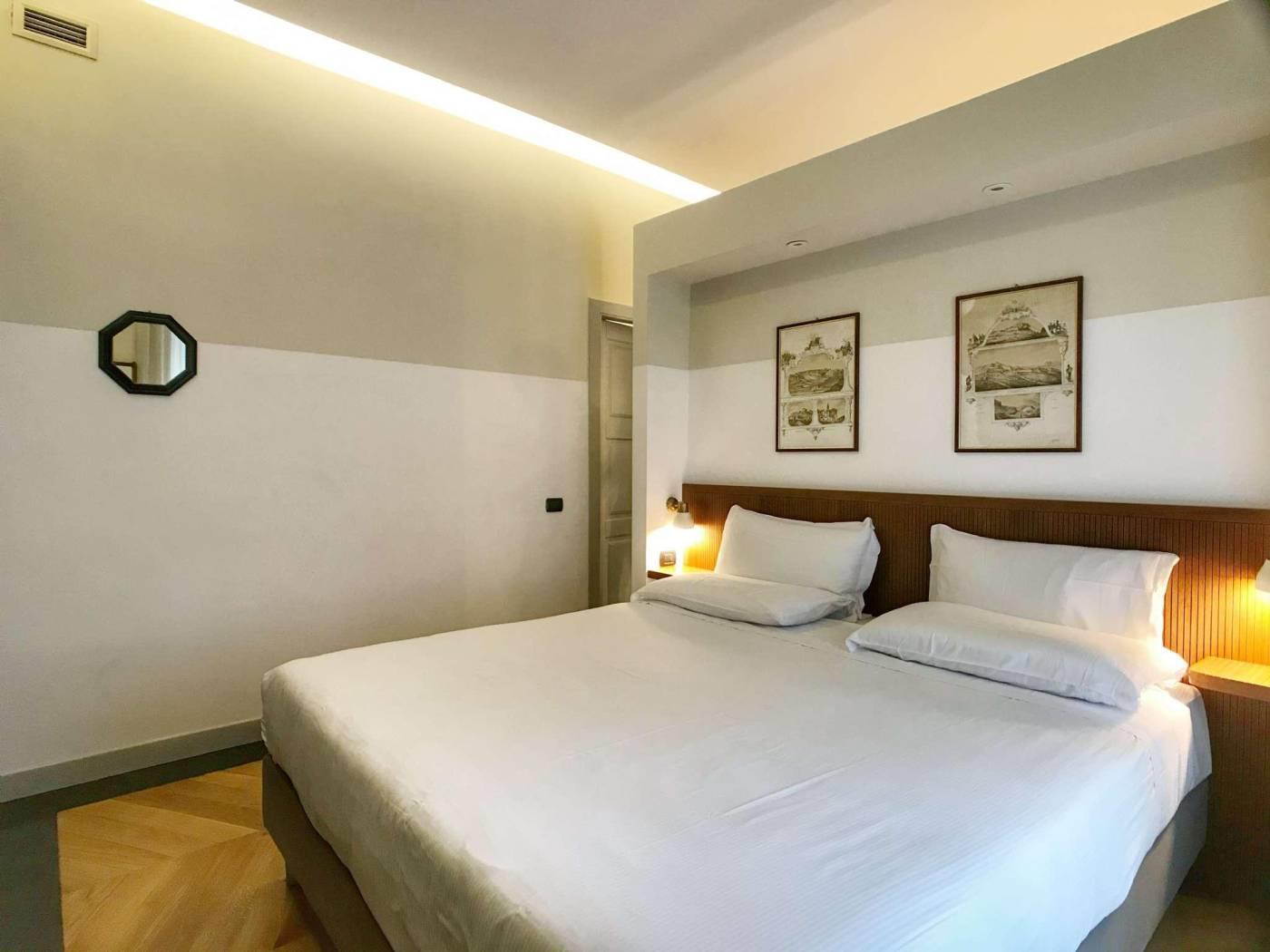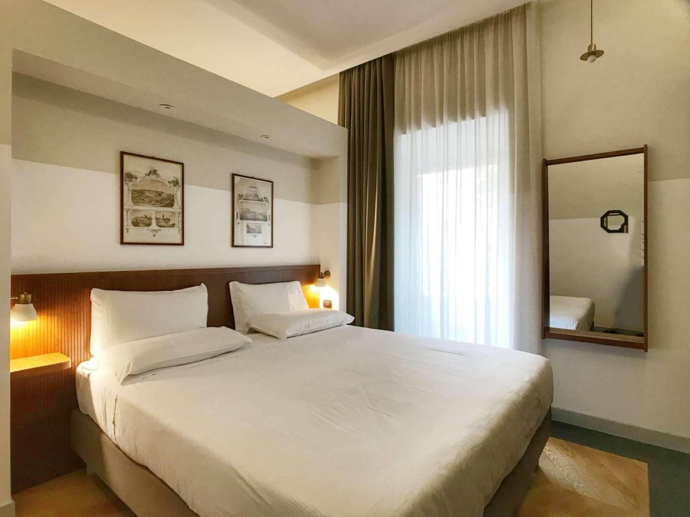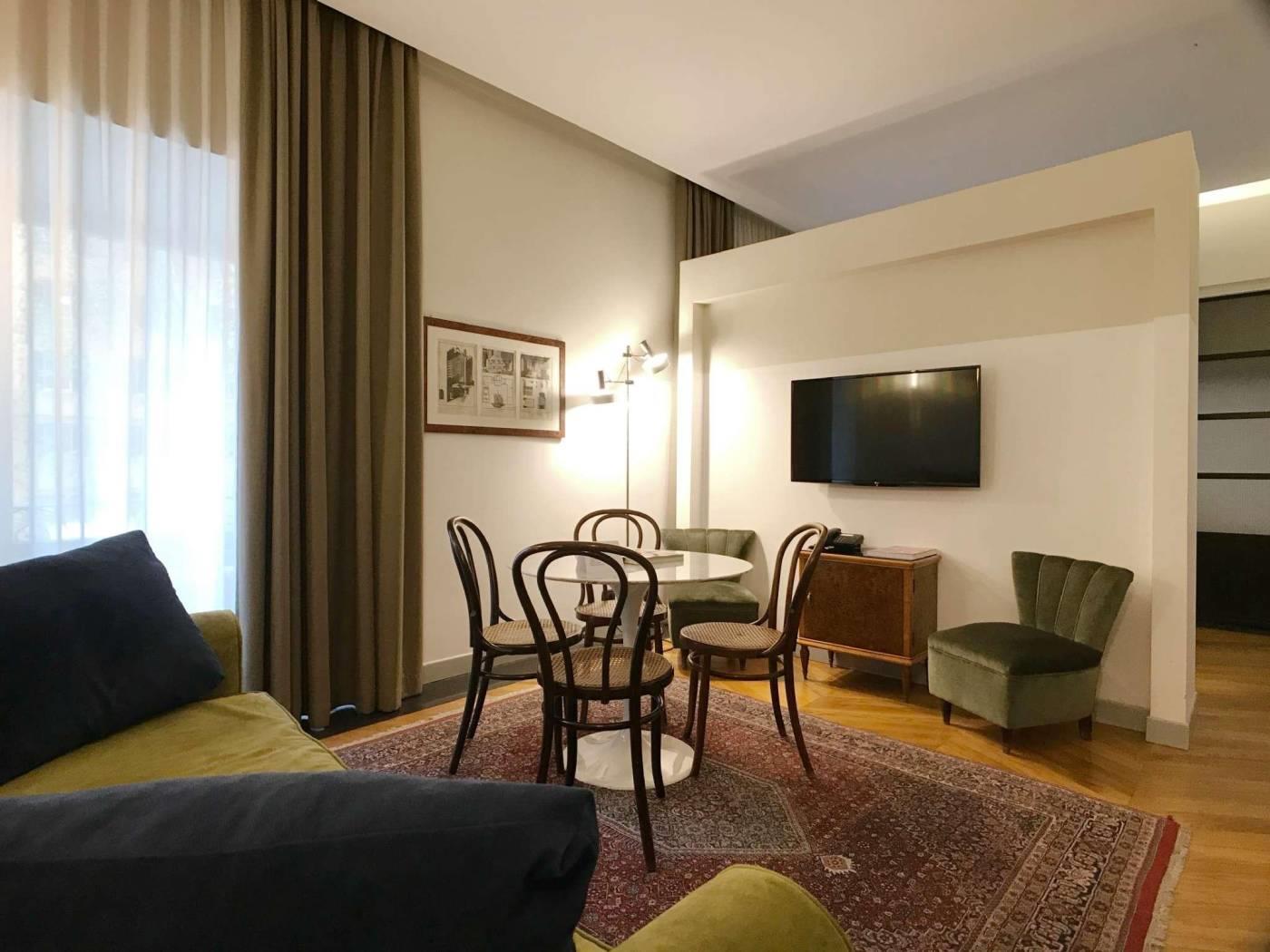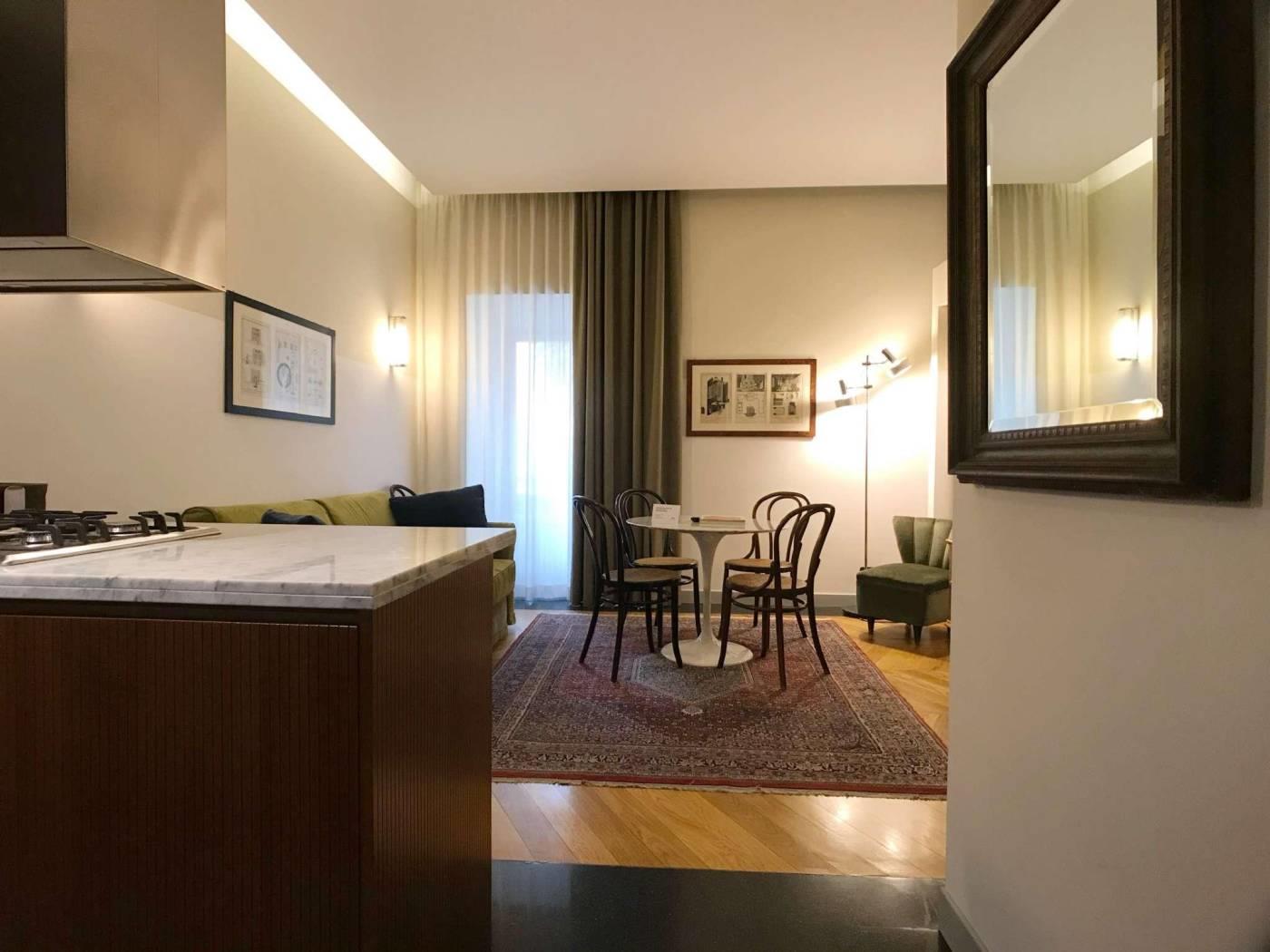 La tradizione della Roma bella ed elegante degli anni del Dopoguerra rivive in questi appartamenti grazie al riutilizzo dei pavimenti in graniglia tipici dell’epoca, i bagni con mattonelle e marmi, la scelta dei materiali e degli oggetti d’arredo parlano la lingua del gusto italiano. Gli spazi sono tutti arredati in maniera diversa con pezzi di modernariato originale degli anni ’50-’60 e con mobili realizzati artigianalmente. È una scelta di bellezza, una volontà di attenzione ai particolari e alla qualità delle finiture.