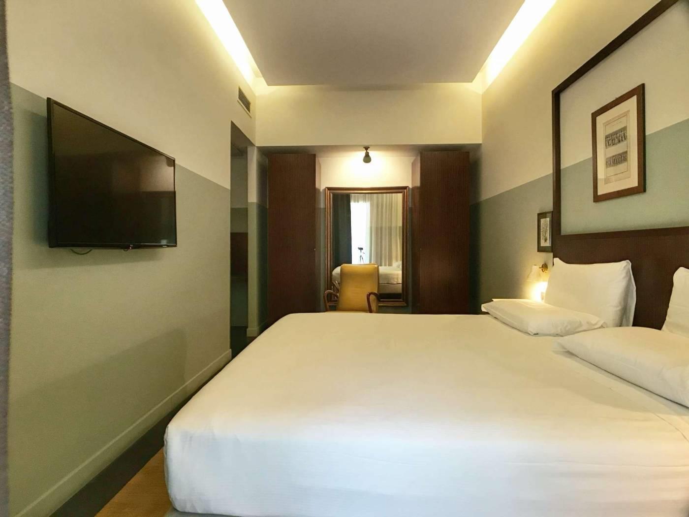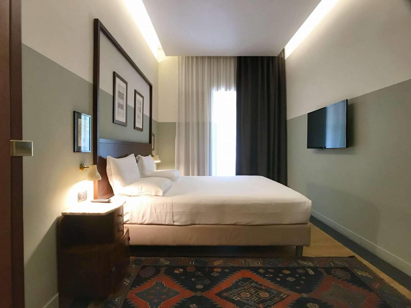 La zona letto è separata e dotata di letto matrimoniale king-size e tv.