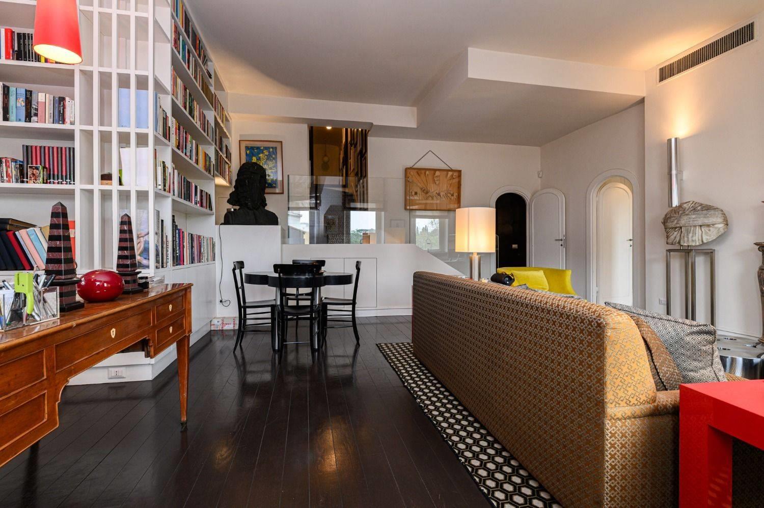 Trastevere, uno dei quartieri più iconici della capitale, precisamente Piazza In Piscinula, parliamo di un ATTICO completamente ristrutturato e disposto su tre livelli, che coniuga il fascino storico della città eterna con la vivacità della Roma contemporanea, creando un connubio perfetto tra tradizione e modernità. Lo stabile edificato nel XV secolo conserva elementi storici sia nella facciata che al suo interno, nel corso del tempo poi ristrutturato, dotato di ascensore e servizio di portierato. Questa proprietà ristrutturata in ogni sua parte e arricchita da importanti elementi architettonici, attualmente è composta da: Al primo livello troviamo un ampio ingresso, una cucina lineare, una zona living con camino e arricchita da affacci unici, due grandi camere da letto, un servizio finestrato, armadi a muro e un esclusivo balcone; Al secondo livello, comodamente raggiungibile con pochi gradini interni, troviamo una grande sala da pranzo con accesso diretto al primo dei terrazzi presenti, la camera da letto padronale con una comoda cabina armadio e bagno in suite (diviso in due ambienti servizi e zona lavello con vasca), una stanza di servizio, una lavanderia e il secondo terrazzo presente al piano; salendo un'agevole rampa di scale raggiungiamo il terzo livello dove troviamo unica nel suo genere, una meravigliosa sala cinema con camino e uscita diretta alla balconata presente a questo piano, una piccola zona living organizzata nei minimi dettagli e un confortevole servizio finestrato. Tra i vantaggi che questa esclusiva proprietà offre, ci sono gli ambienti spaziosi, l'aria condizionata, il riscaldamento autonomo, numerosi armadi a muro e spazi di servizio. Le alte portefinestre e le grandi pareti finestrate sprigionano alla casa luce naturale gran parte della giornata. Fattore di rilievo la posizione di assoluto prestigio in una delle zone più suggestive di Roma.