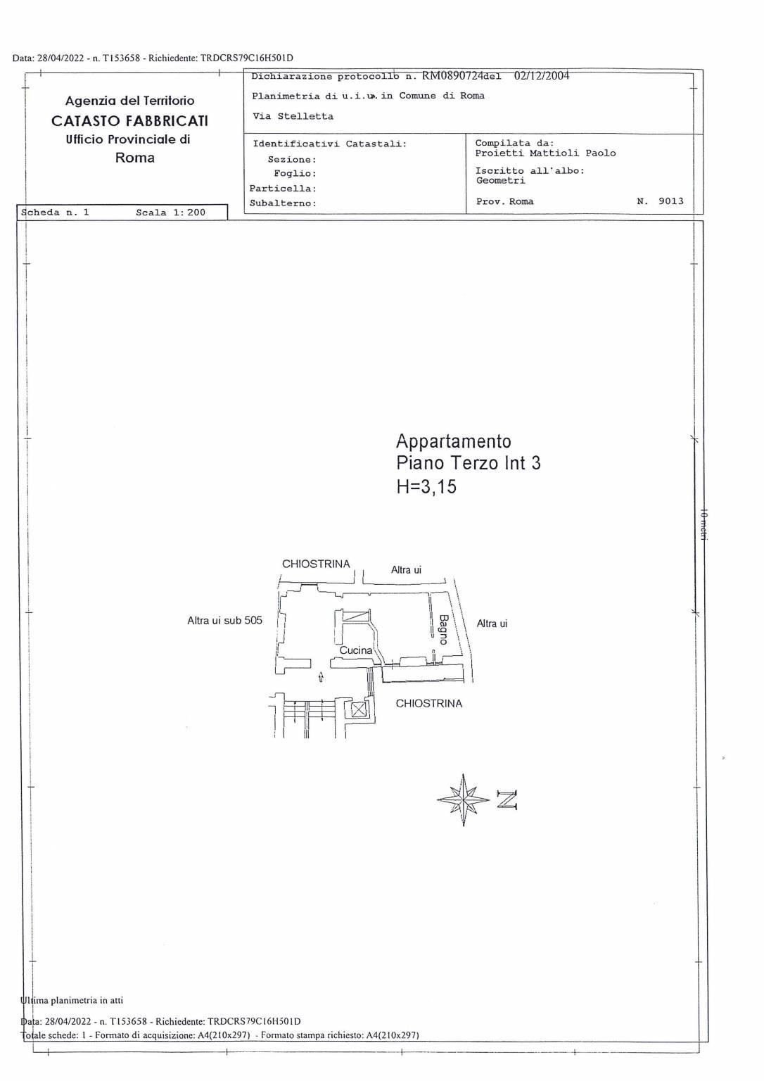 L'appartamento è composto da soggiorno, camera matrimoniale, cucina, bagno con doccia, disimpegno con armadio a muro e balcone.