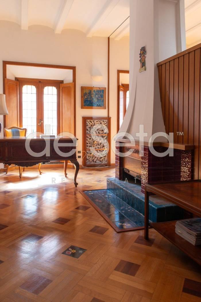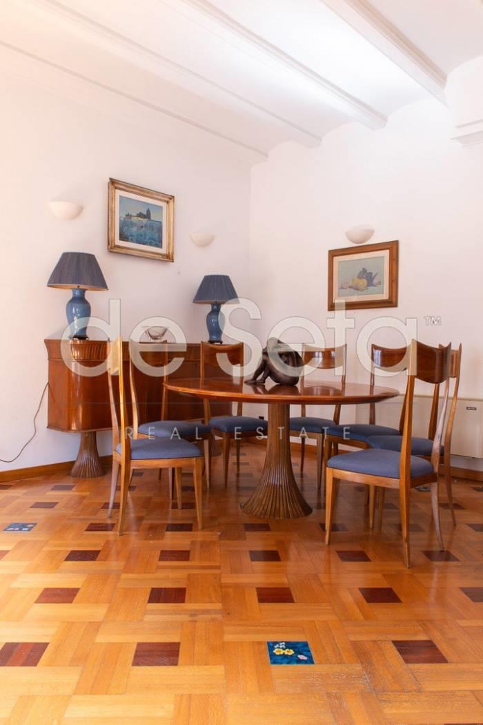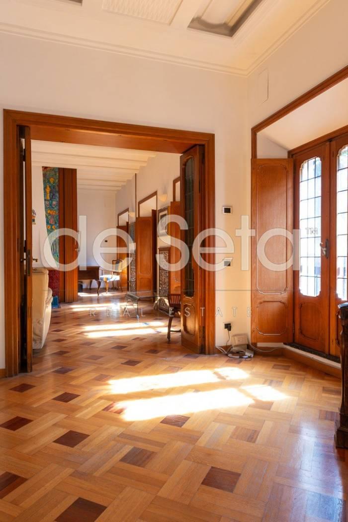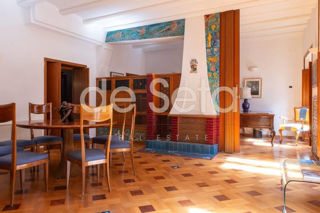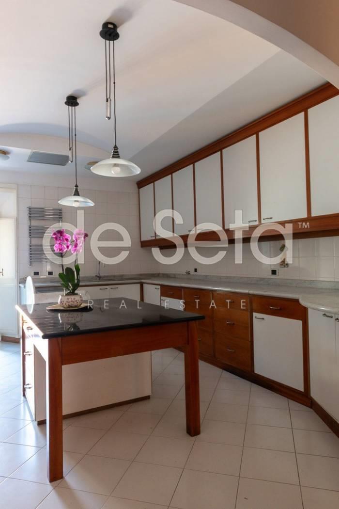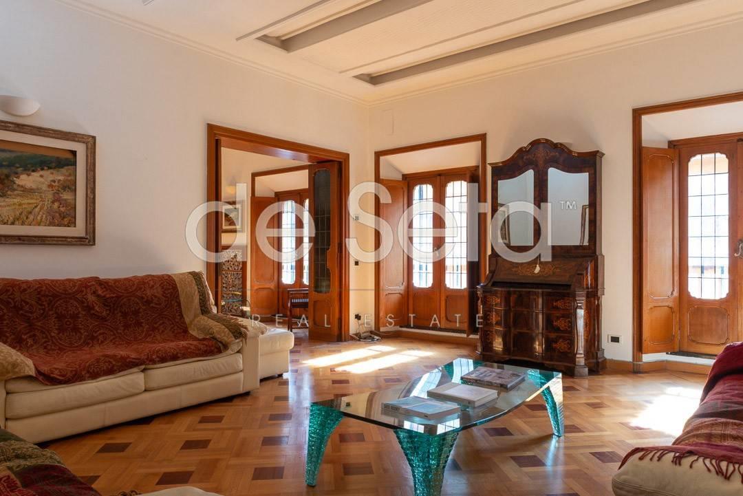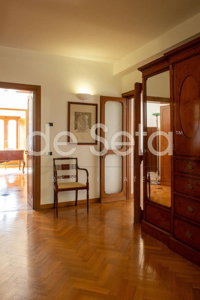 Attualmente composto da grande ingresso con armadi a muro, salone, sala da pranzo, studio, ampia cucina abitabile con balconcino, disimpegno, due grandi camere da letto (una puo' essere divisa in due), 2 bagni (uno molto grande potrebbe essere una camera).