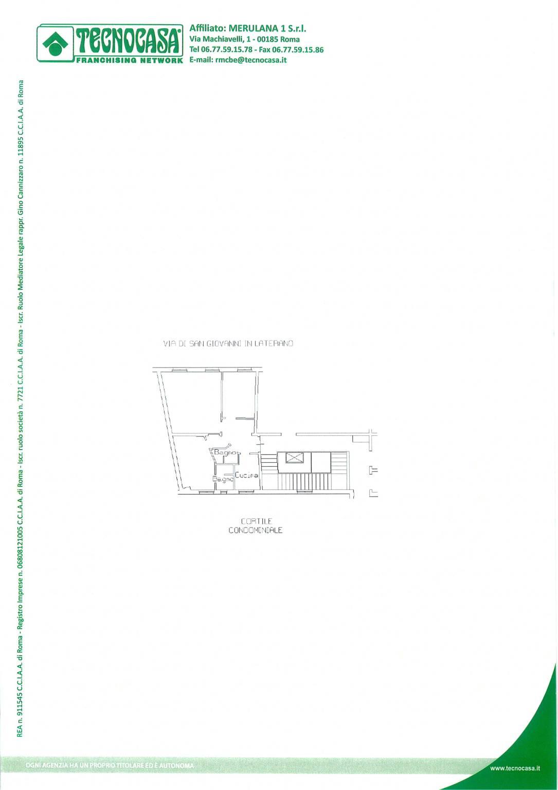 Il piano alto e la doppia esposizione, su via di San Giovanni in Laterano da cui si vede il Colosseo e sulla corte condominiale con affaccio aperto e panoramico, rendono l'appartamento molto luminoso e silenzioso.