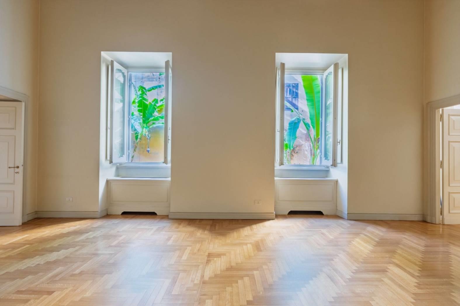 The coffered wooden ceilings, over five meters high in some rooms, lend great prestige, while the parquet floor, present throughout the house, adds a touch of warmth and elegance to the apartment.